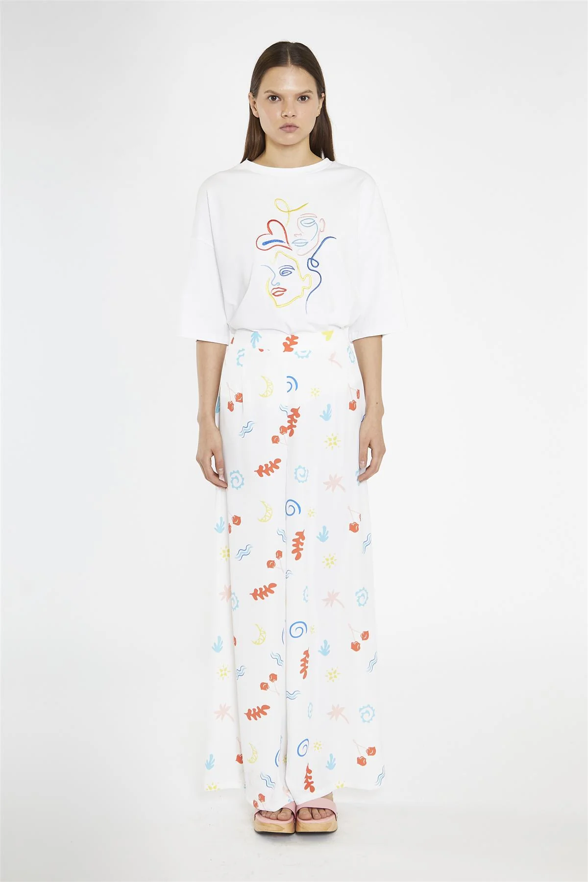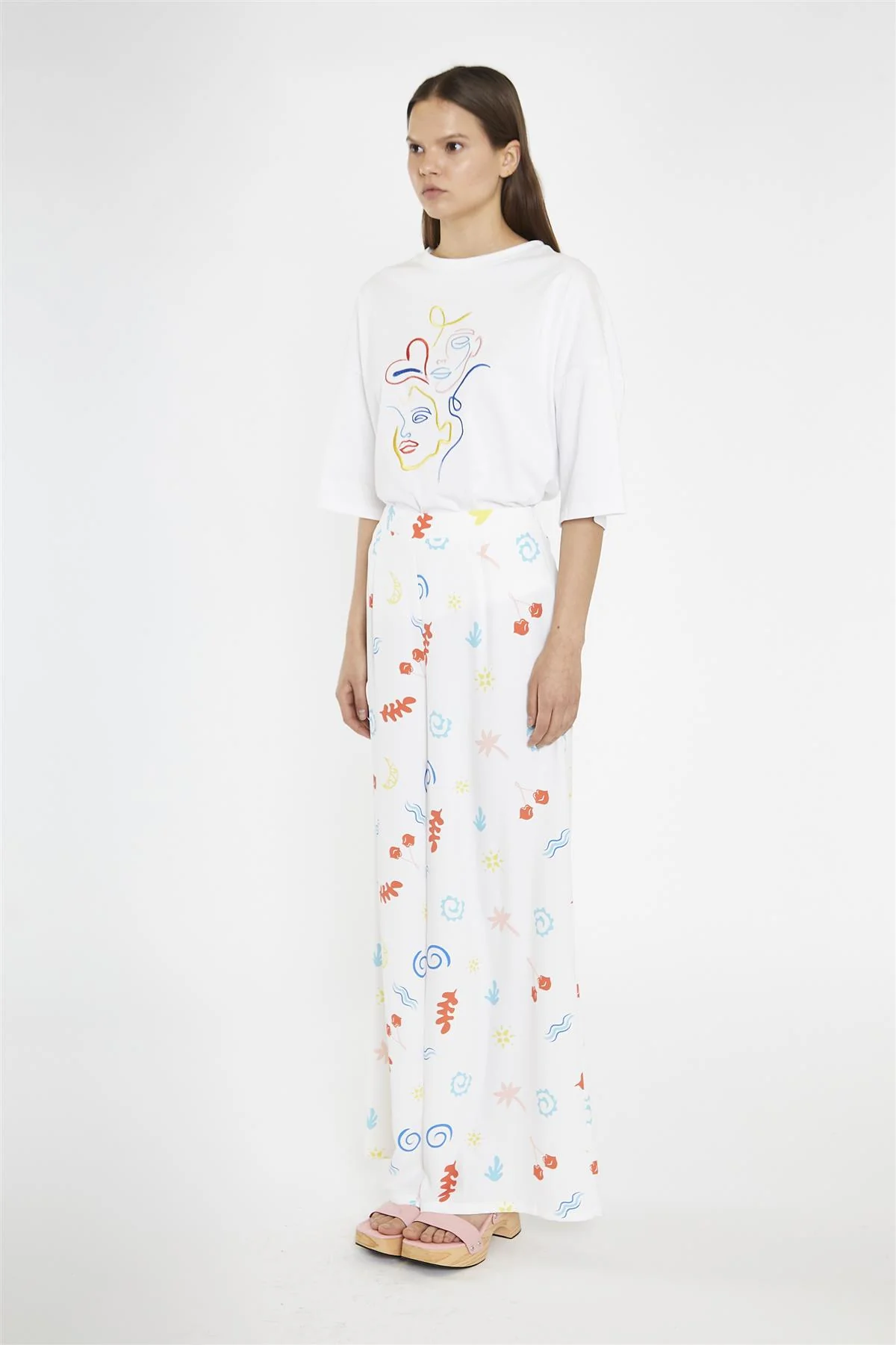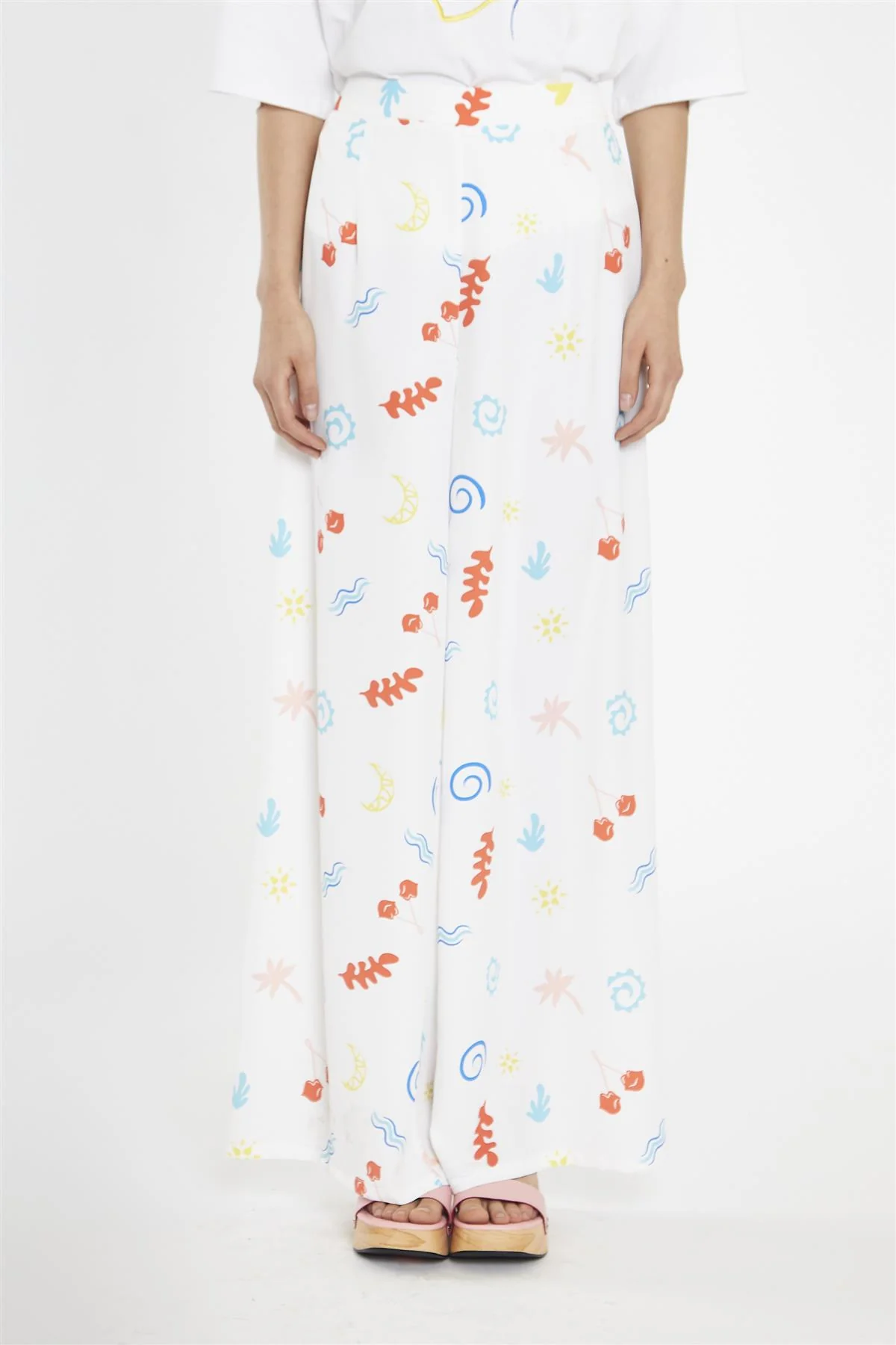 Vacation Print Wide Leg-Trousers