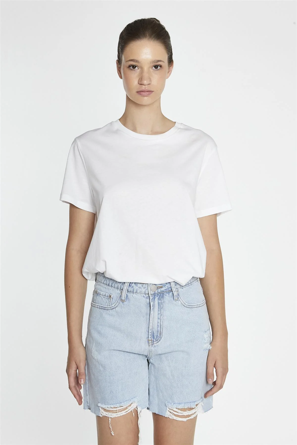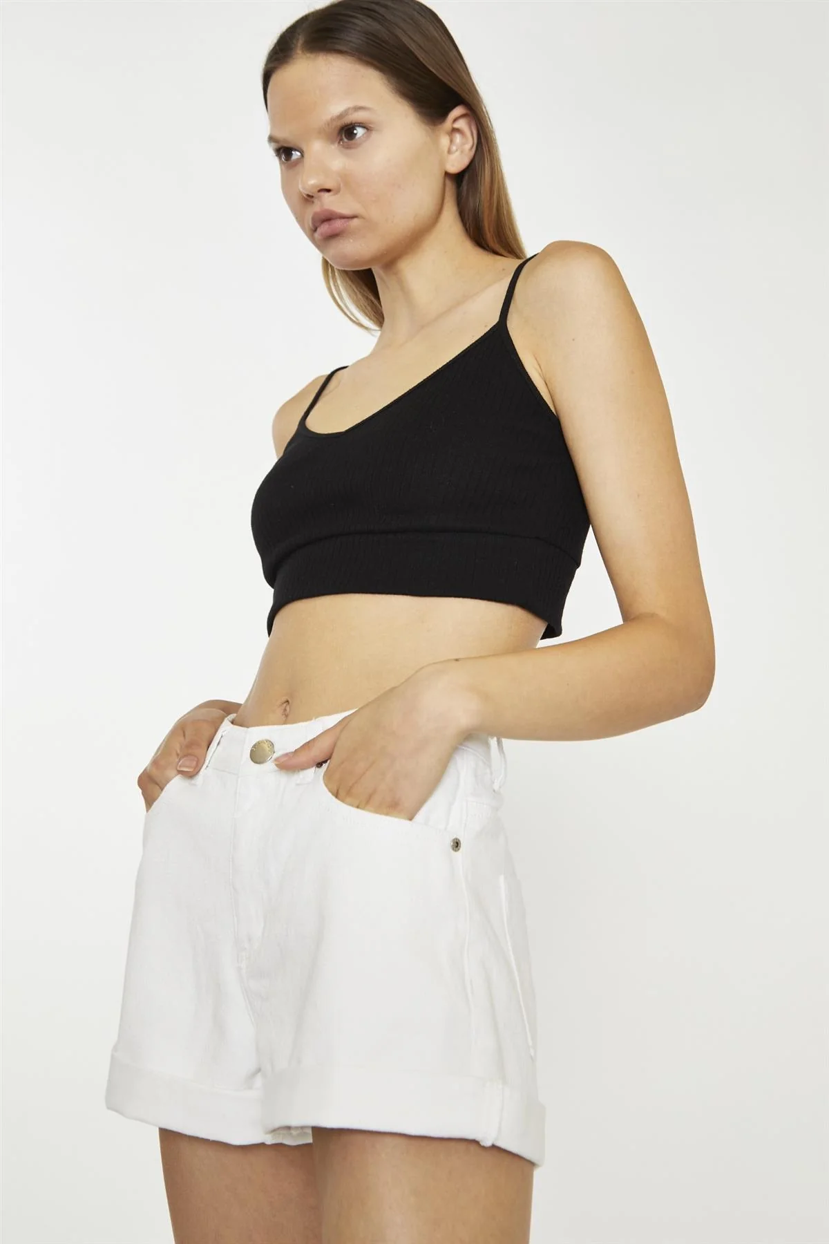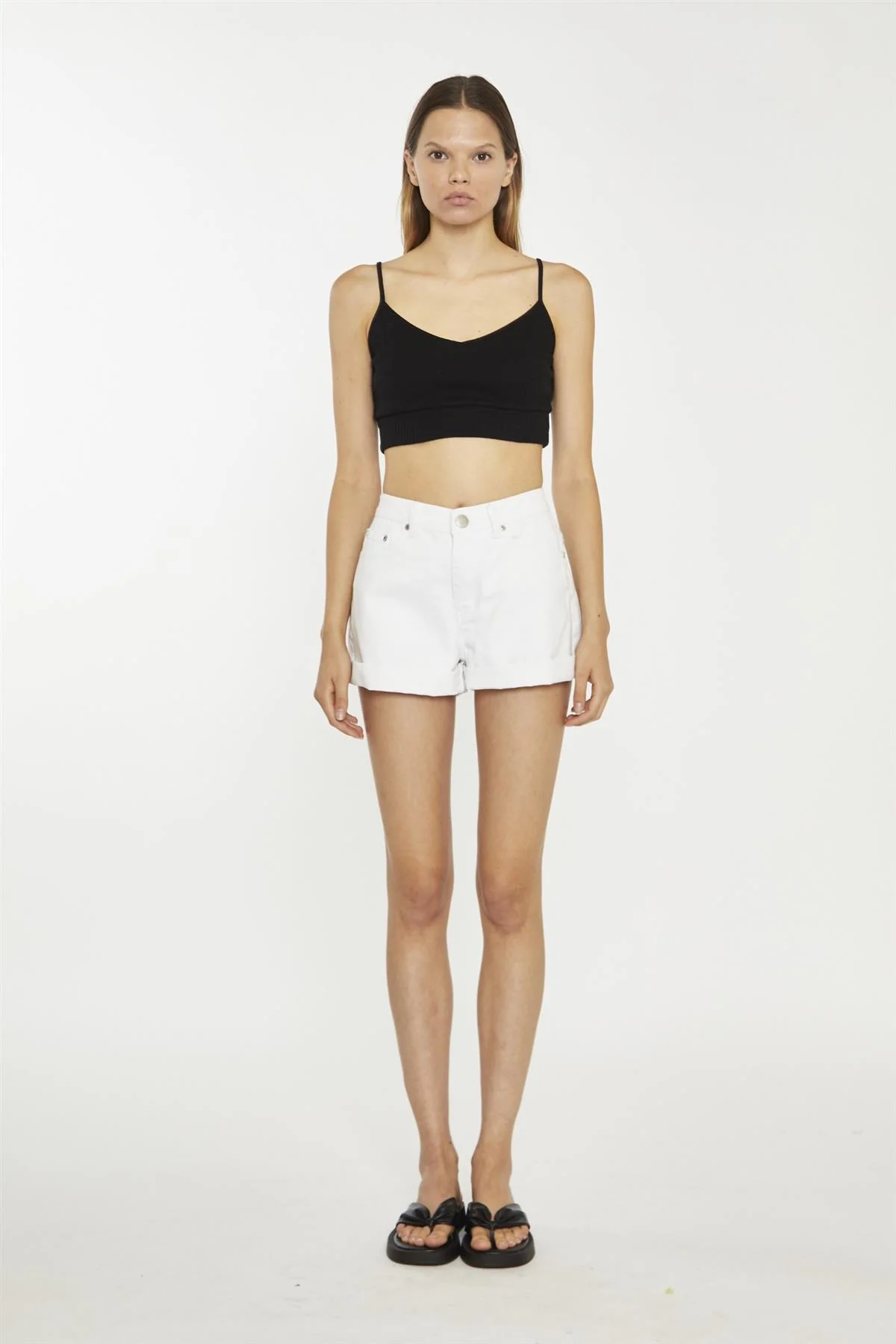 White Turn-Up Denim-Shorts