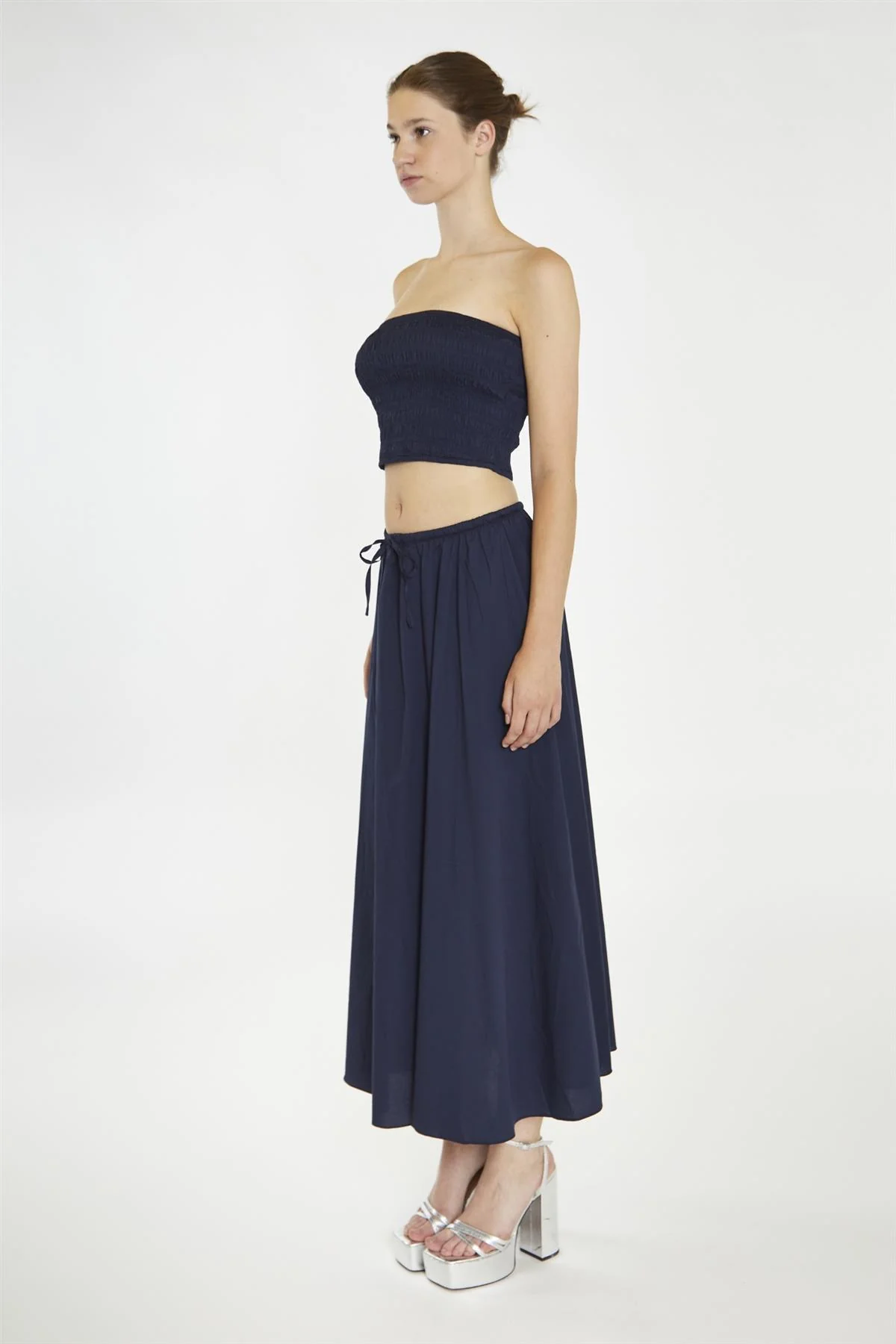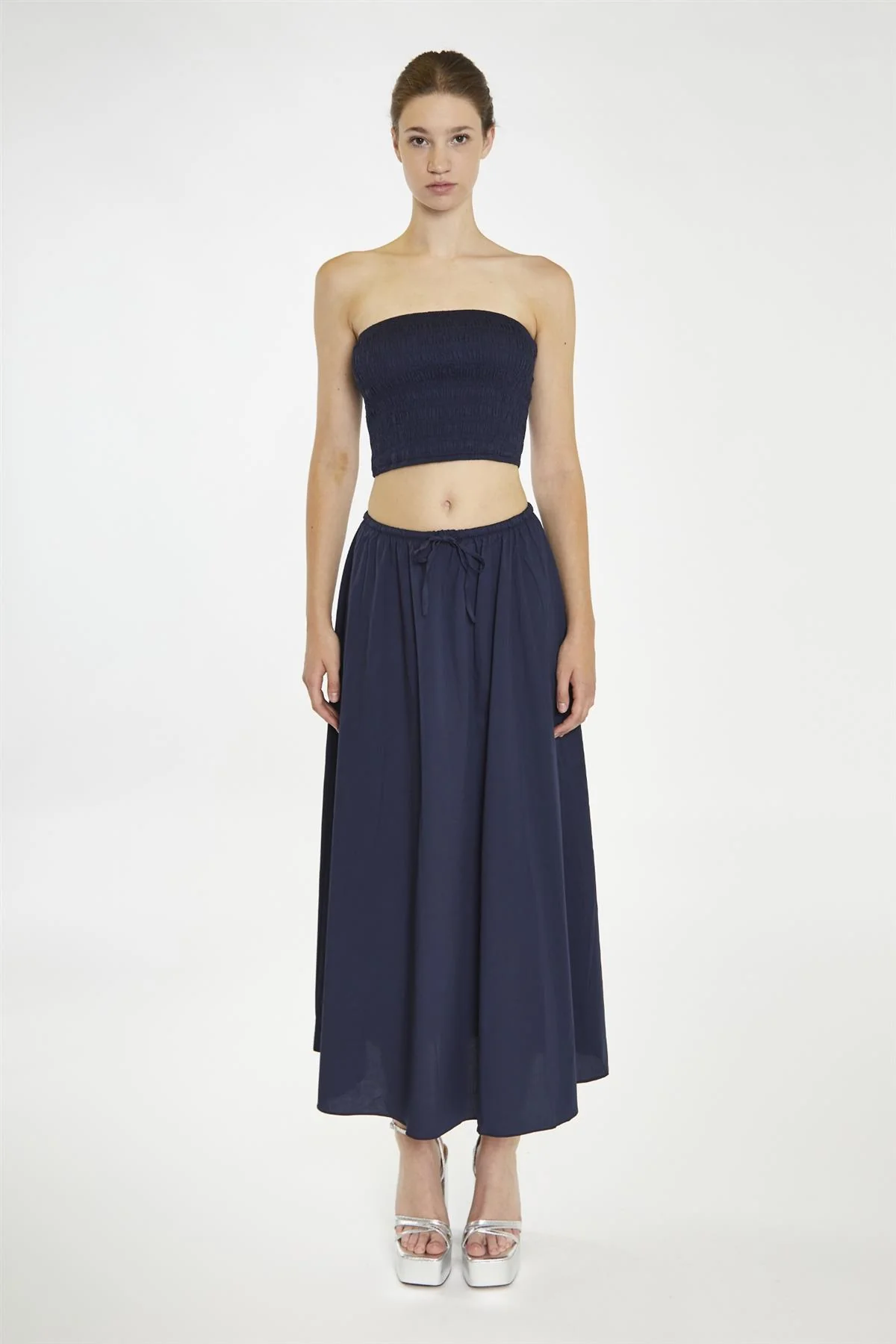Navy Smocked Bandeau Crop-Top