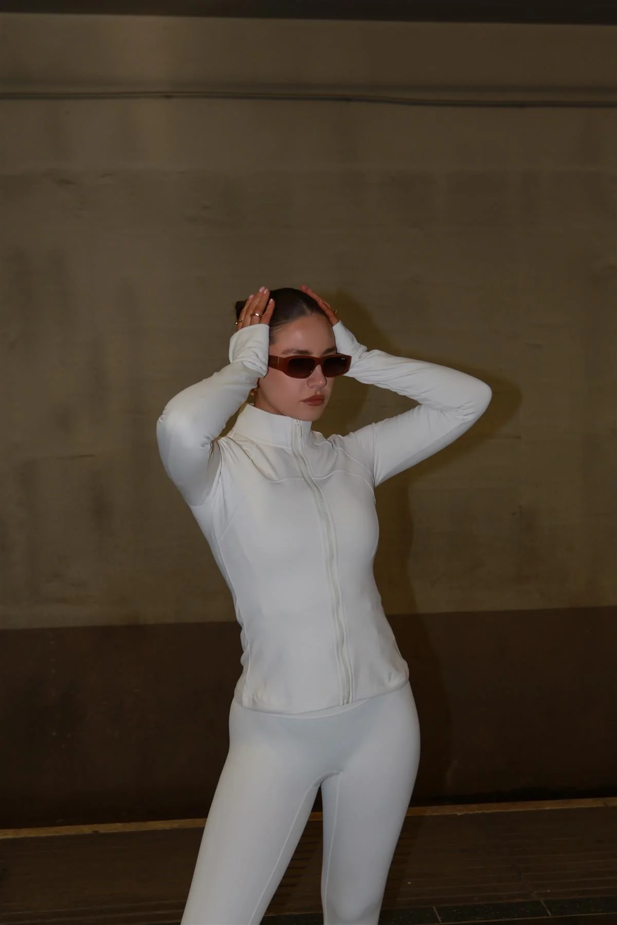 Signature Full Zip Long Sleeve Top - Putty