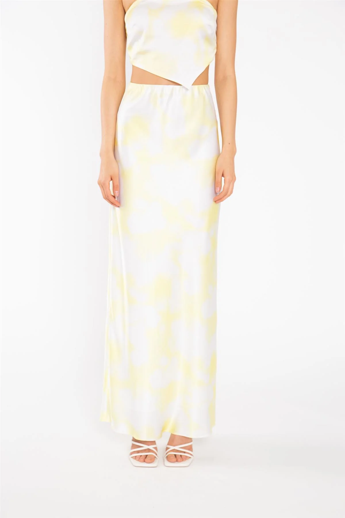 Yellow Print-Satin Bias-Cut Maxi-Skirt