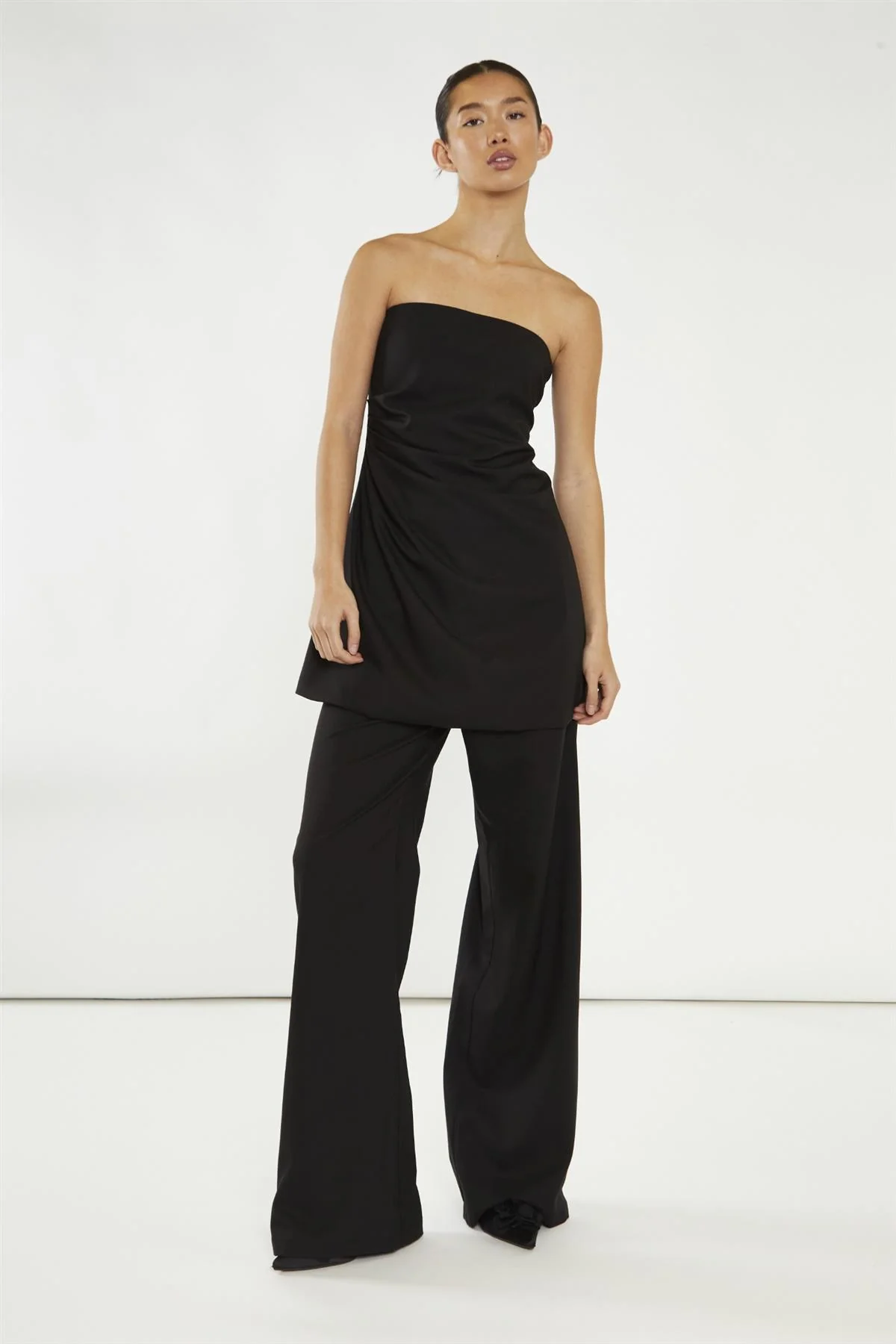 Black Gathered Waist Longline-Top