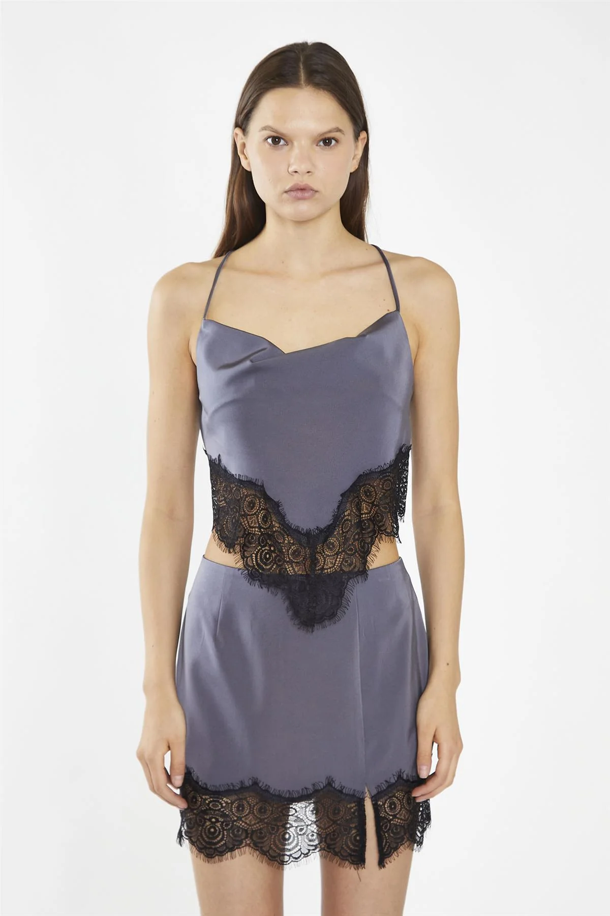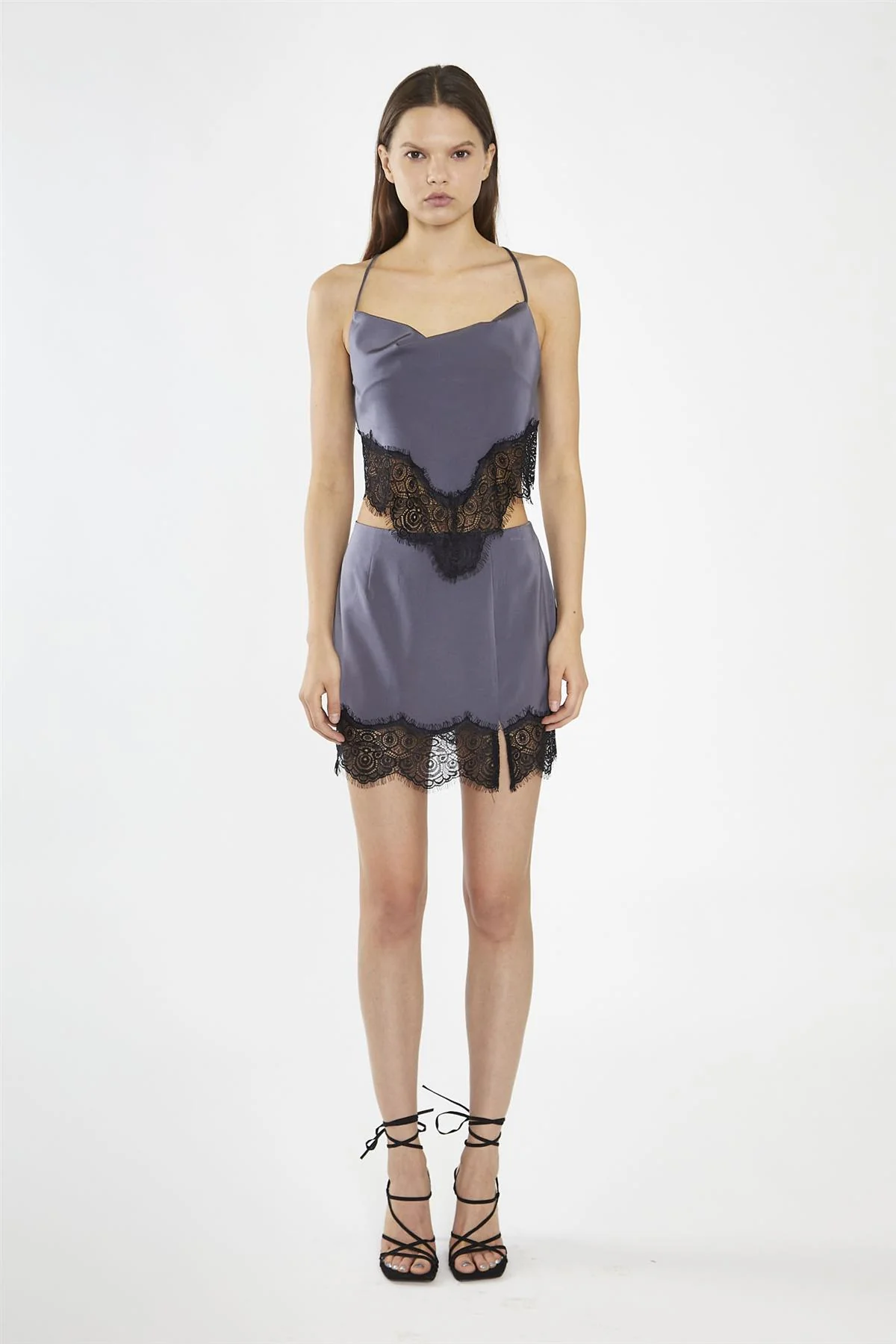Charcoal-Grey Black Lace-Trim Mini-Skirt