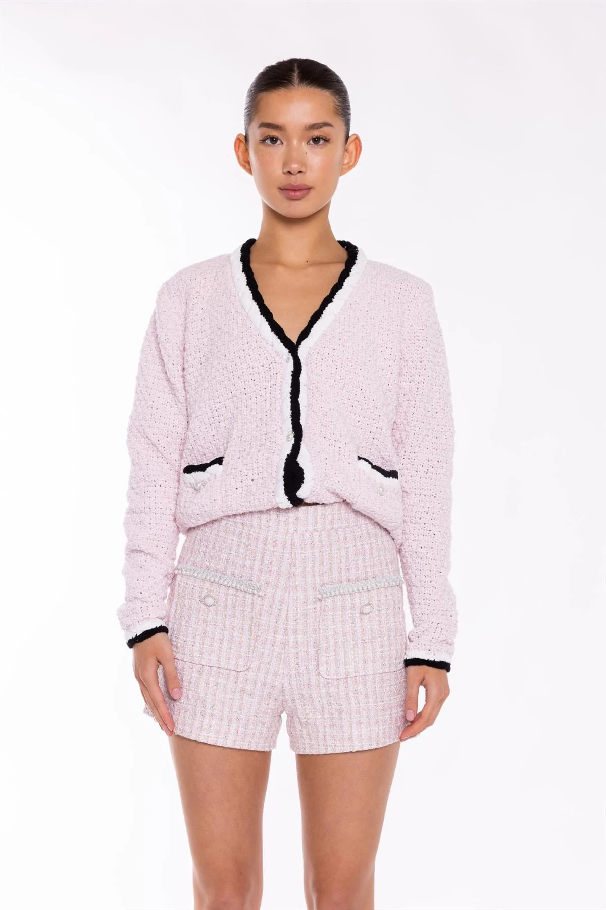 Pink-White Tweed Mini Shorts