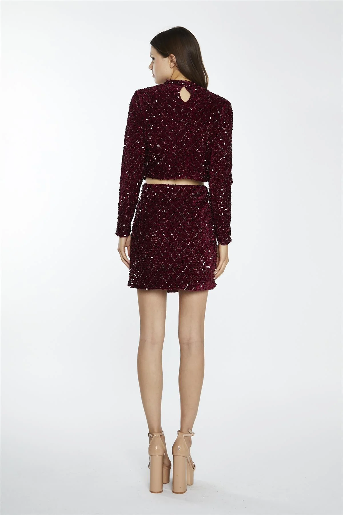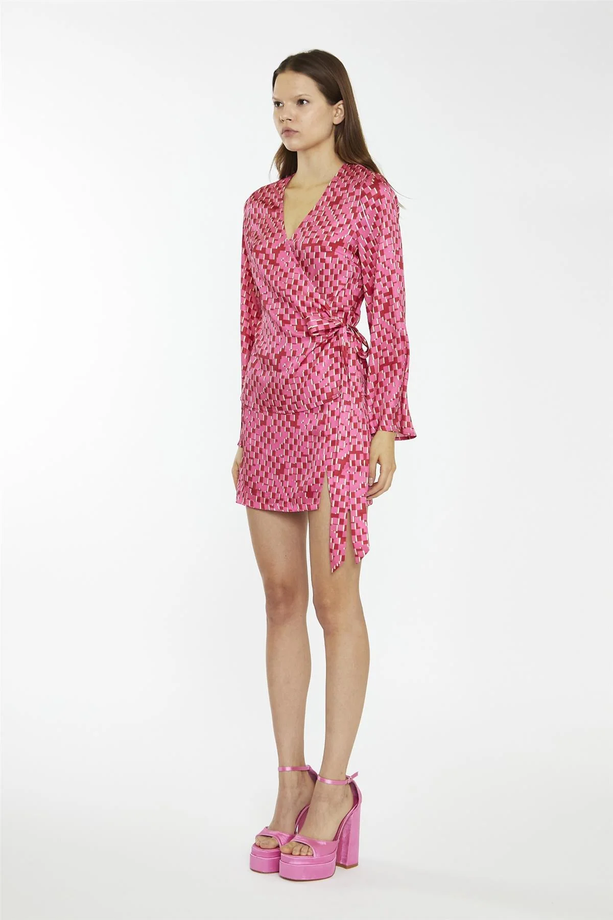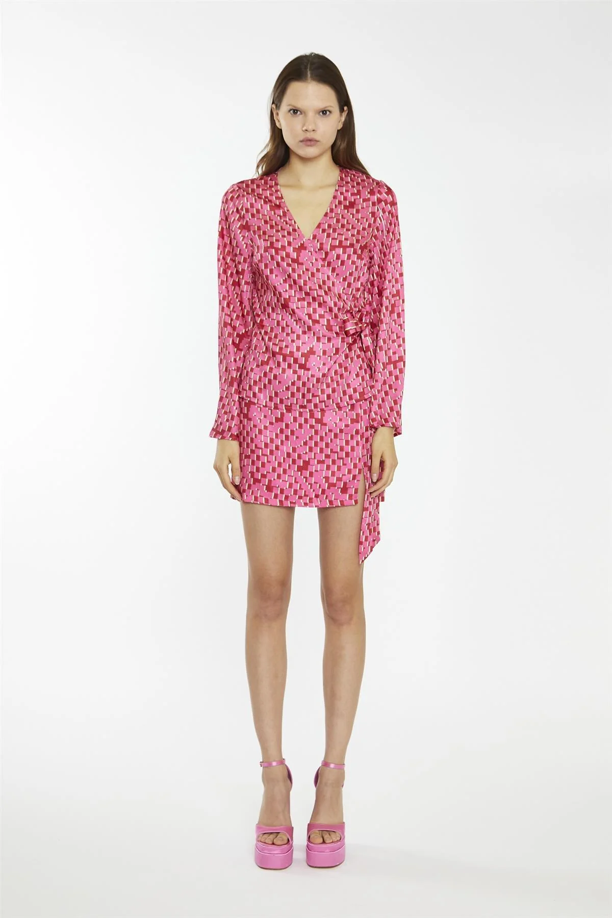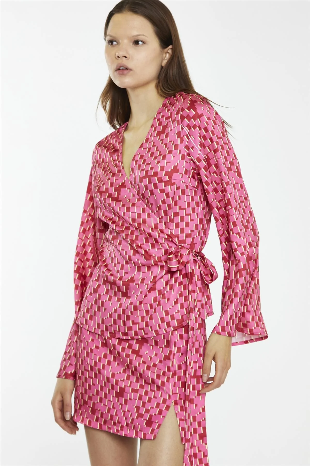 Pink Multi-Square Fluted Sleeve Wrap Top