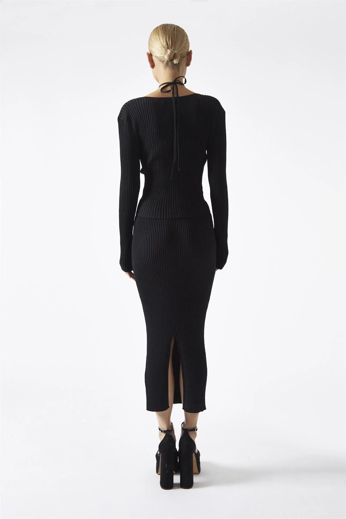 Black High-Waist Knit Midaxi-Skirt