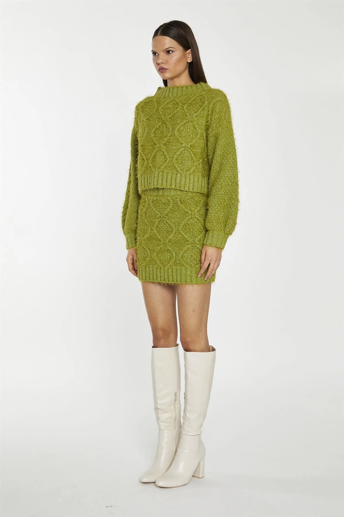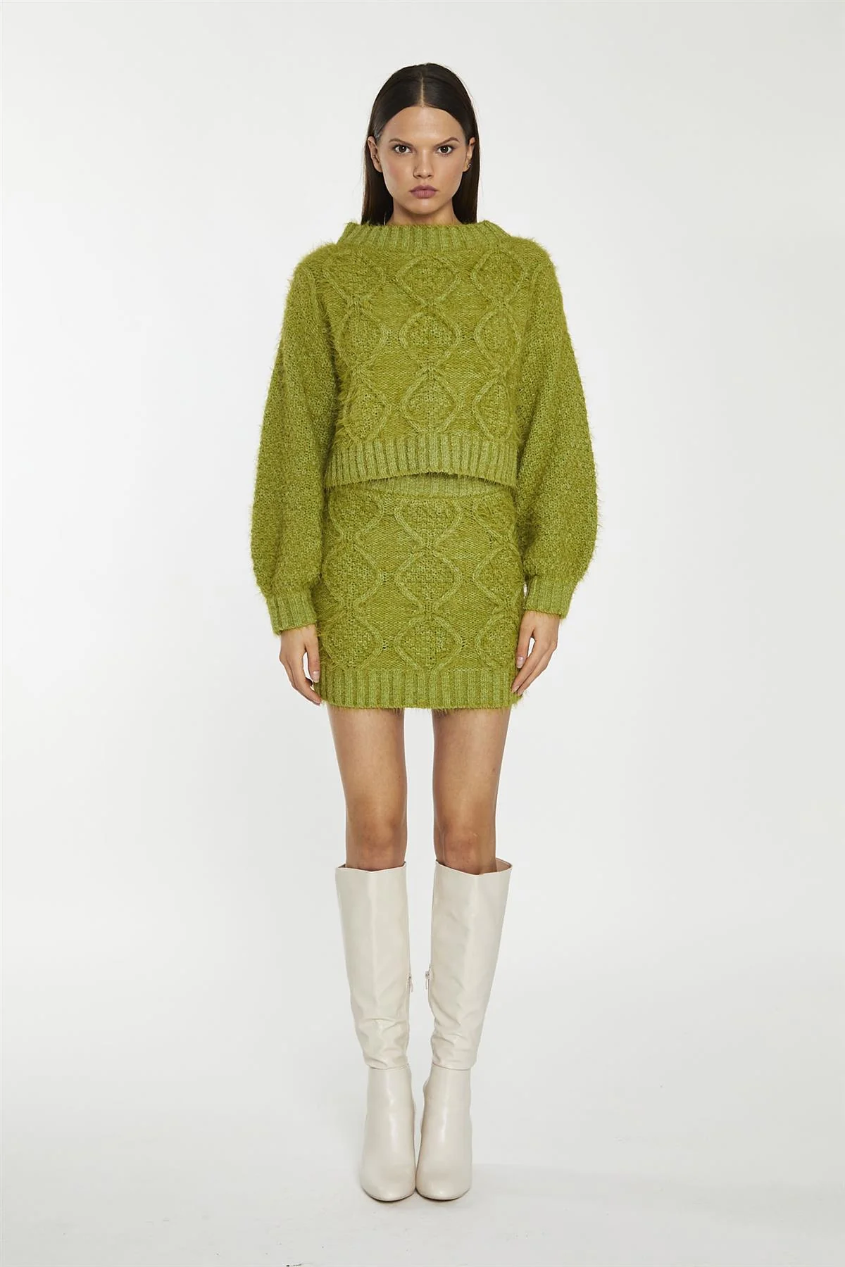 Grass-Green Cable-Knit Mini-Skirt