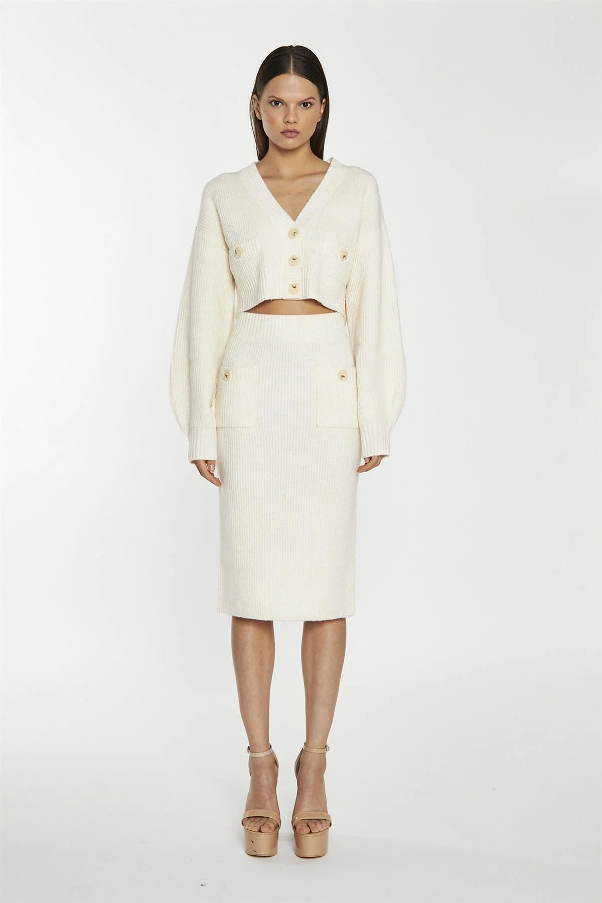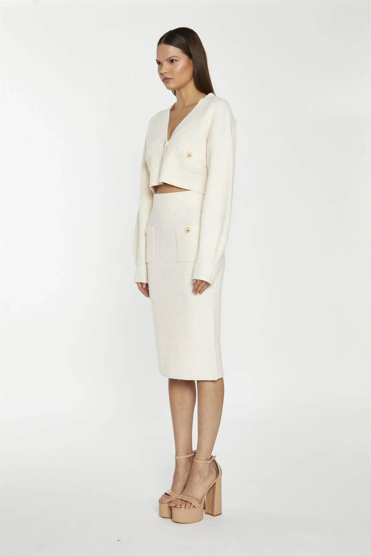 Dark-Cream Knitted Pencil Midi-Skirt