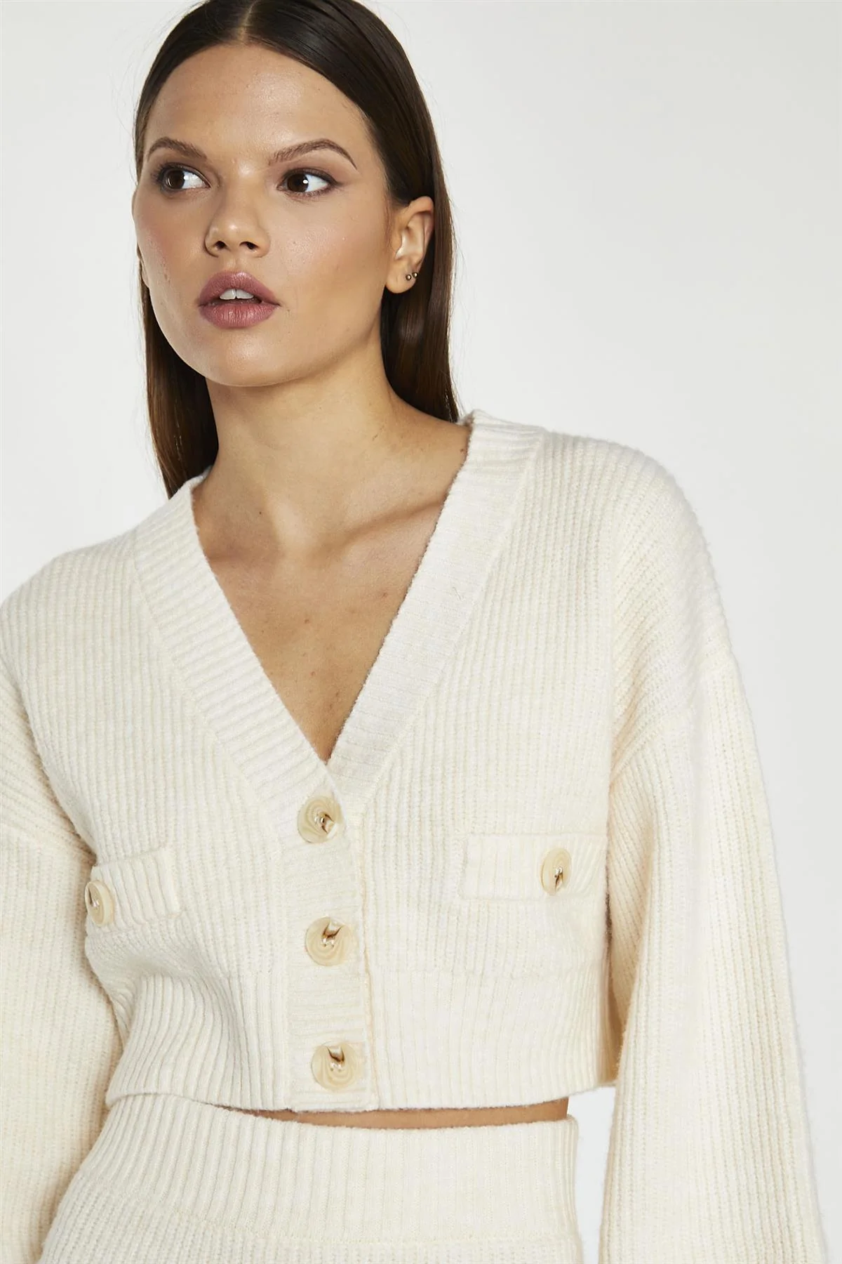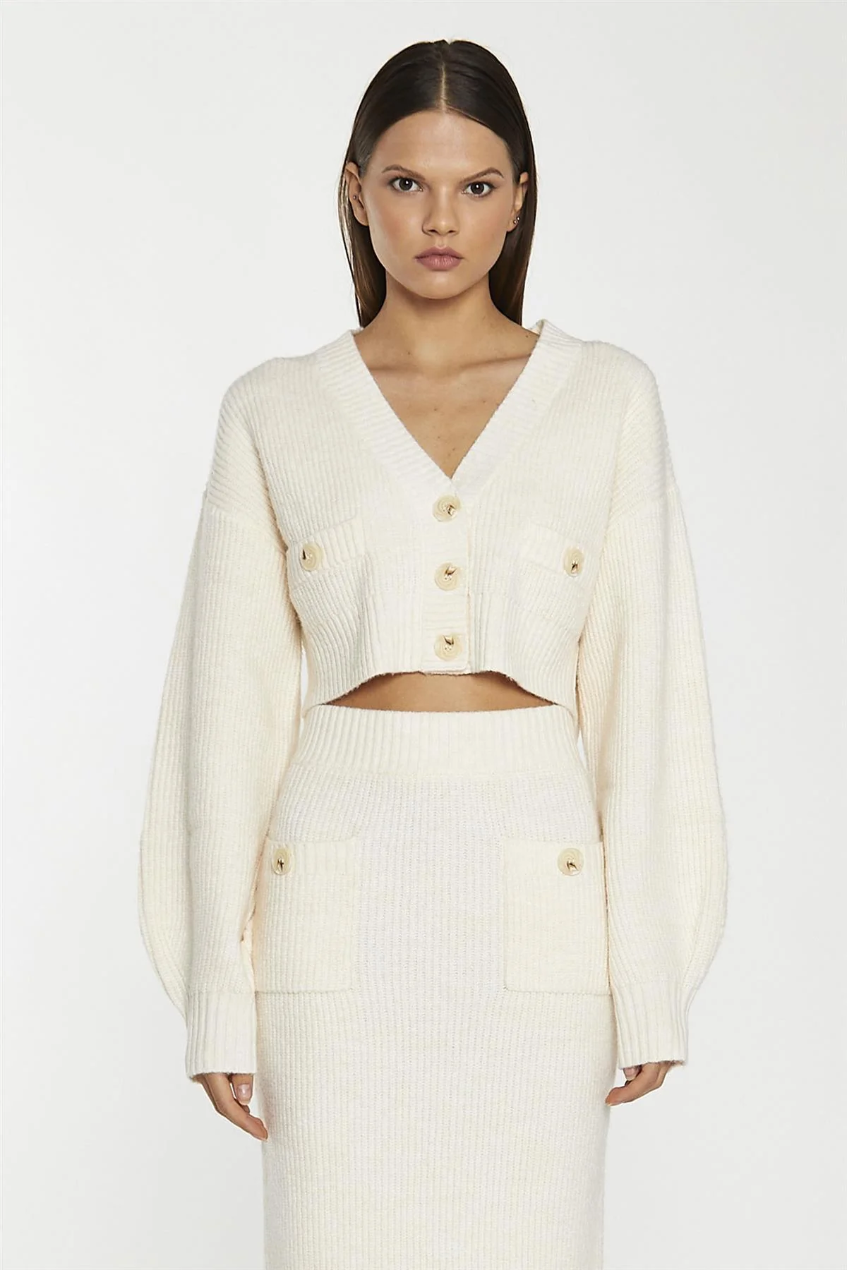Dark-Cream Oversized Sleeve Crop-Cardigan