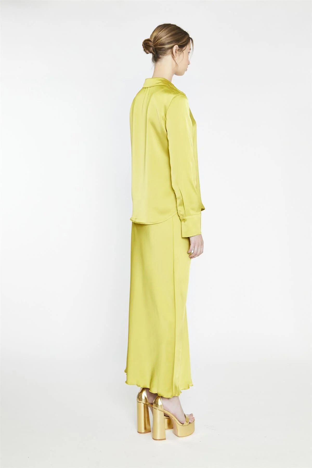 Chartreuse Sateen Bias-Cut Midi-Skirt
