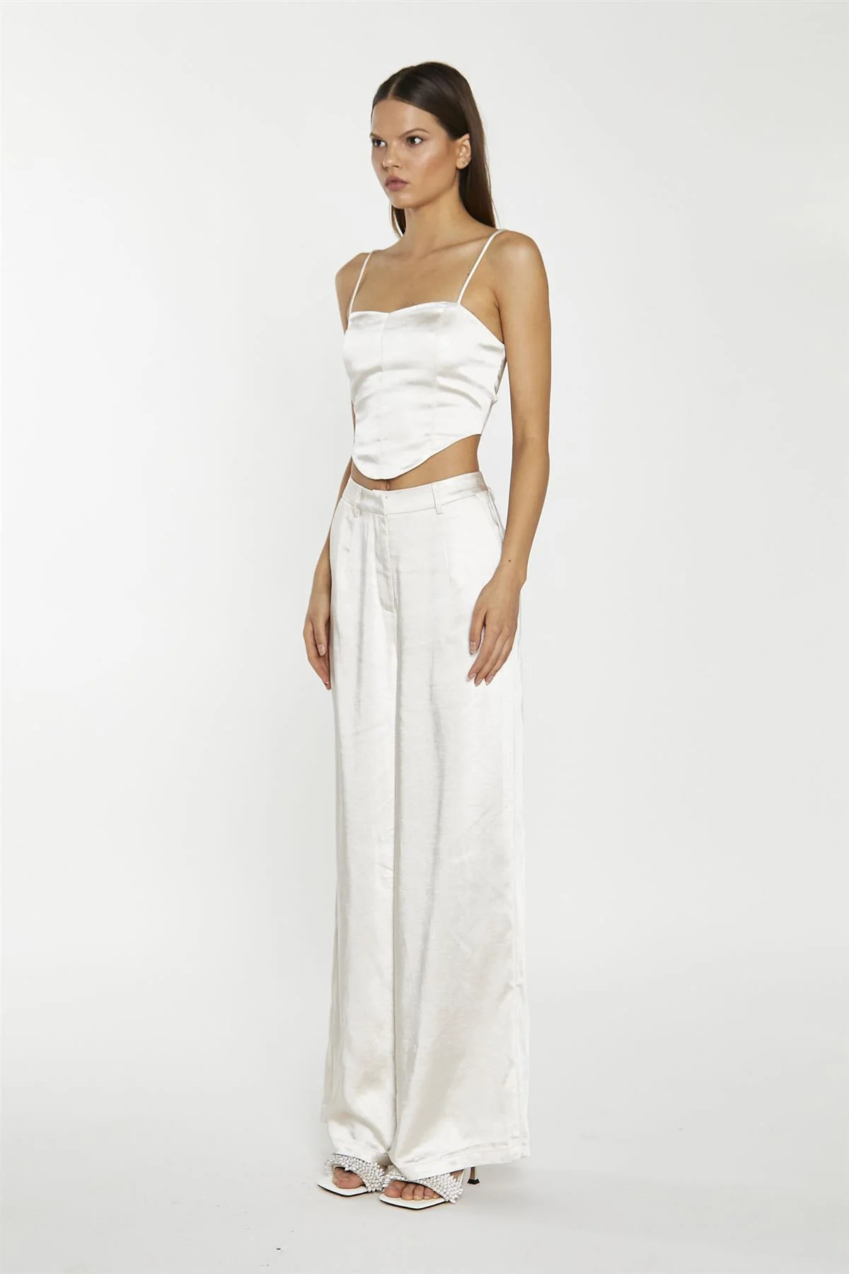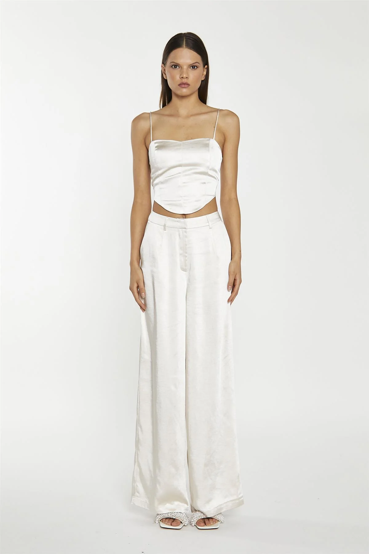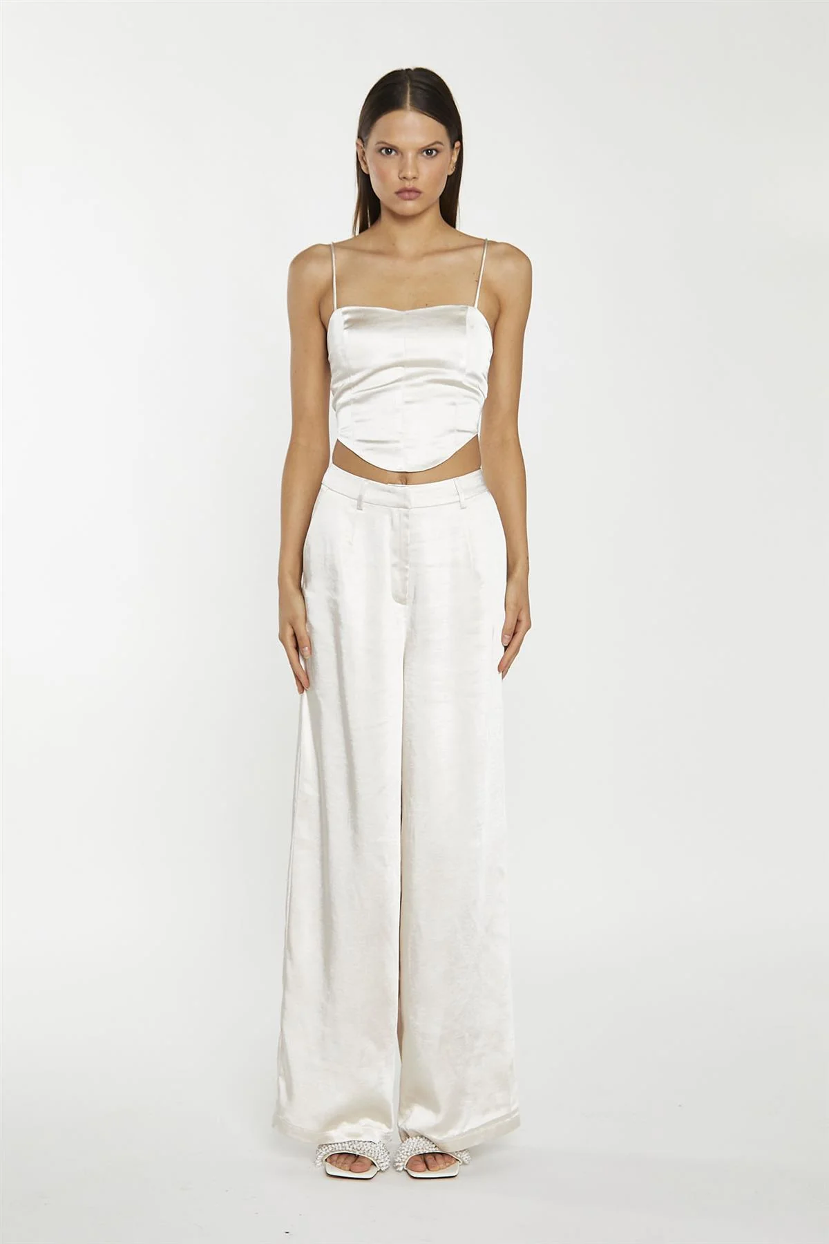 Champagne Satin Wide Leg Trousers