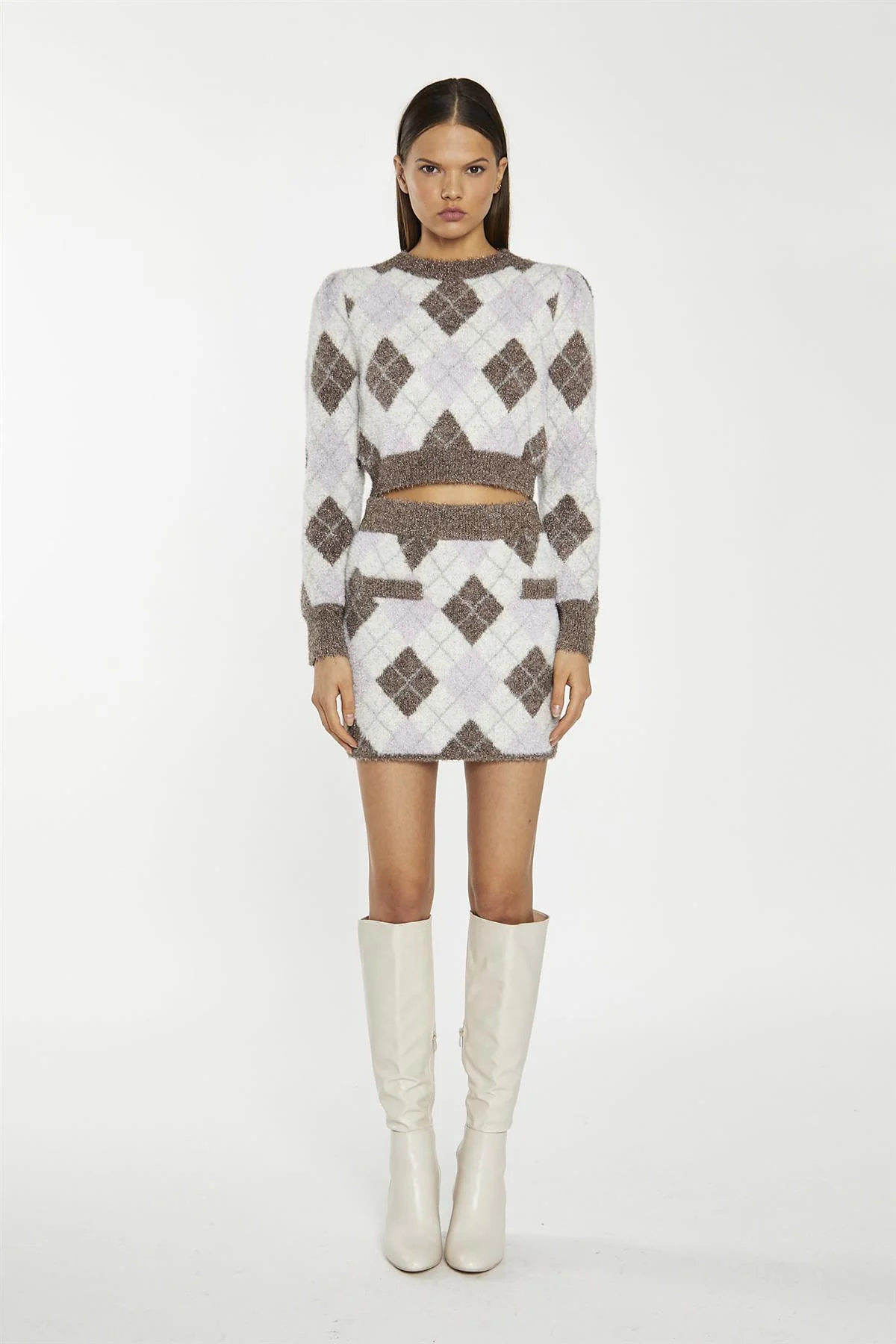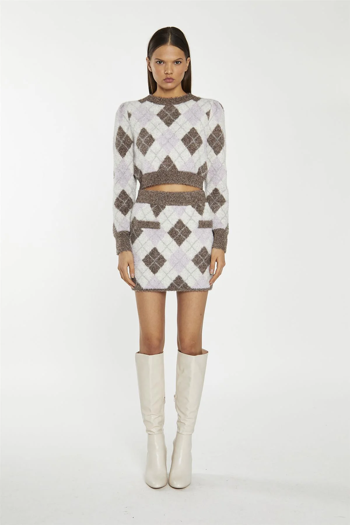 Brown Multi-Argyle Glitter Knit Crop-Jumper