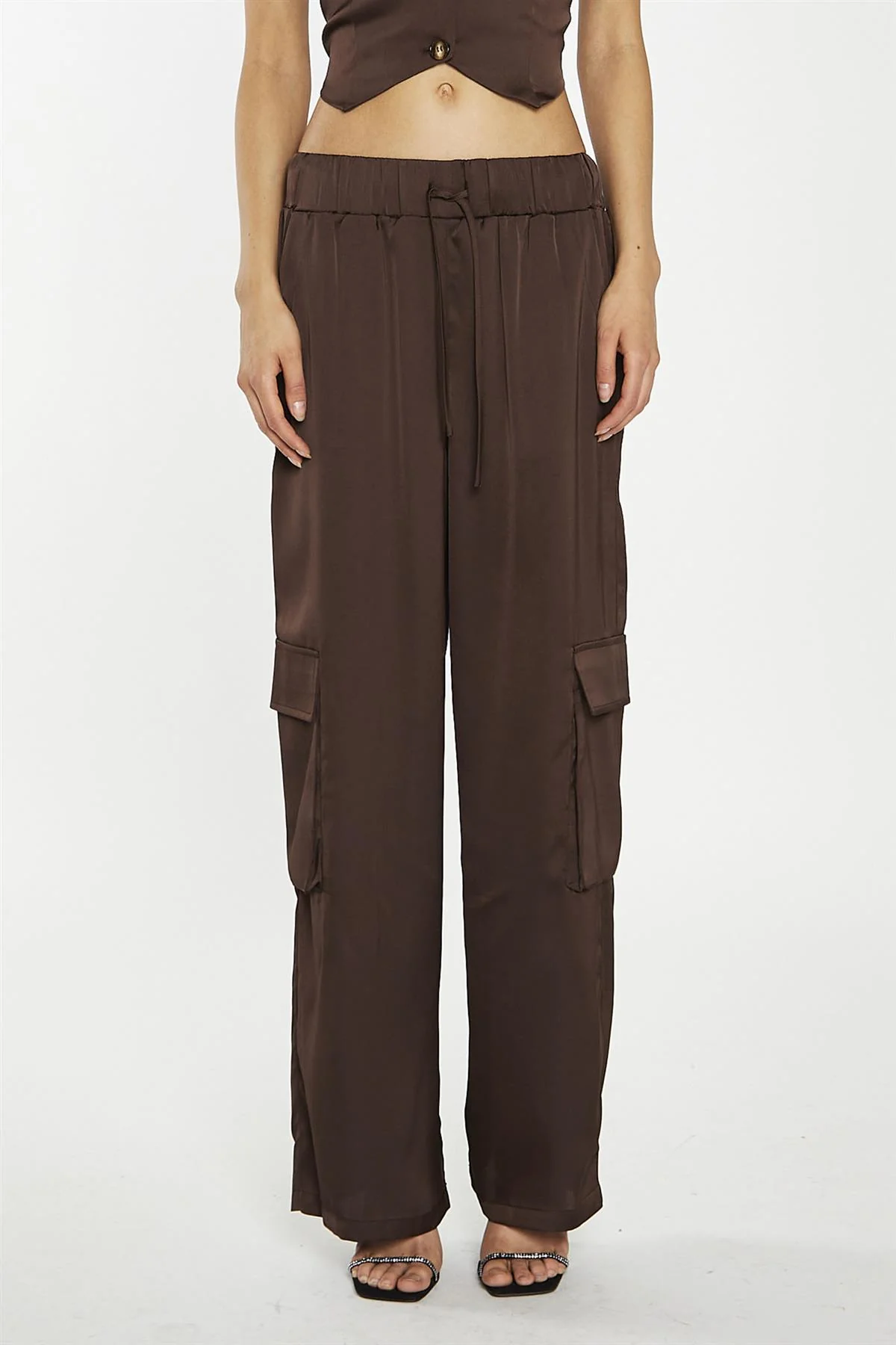 Brown-Satin Cargo Trousers