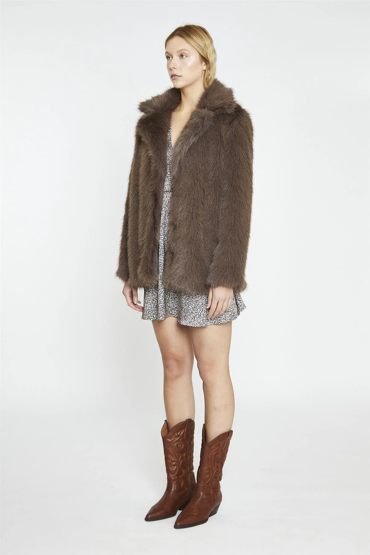 Smoke Brown Faux Fur-Coat