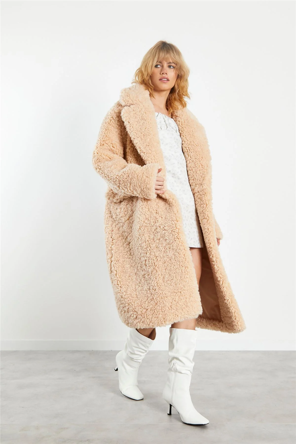 Winter White Longline Faux Fur Coat