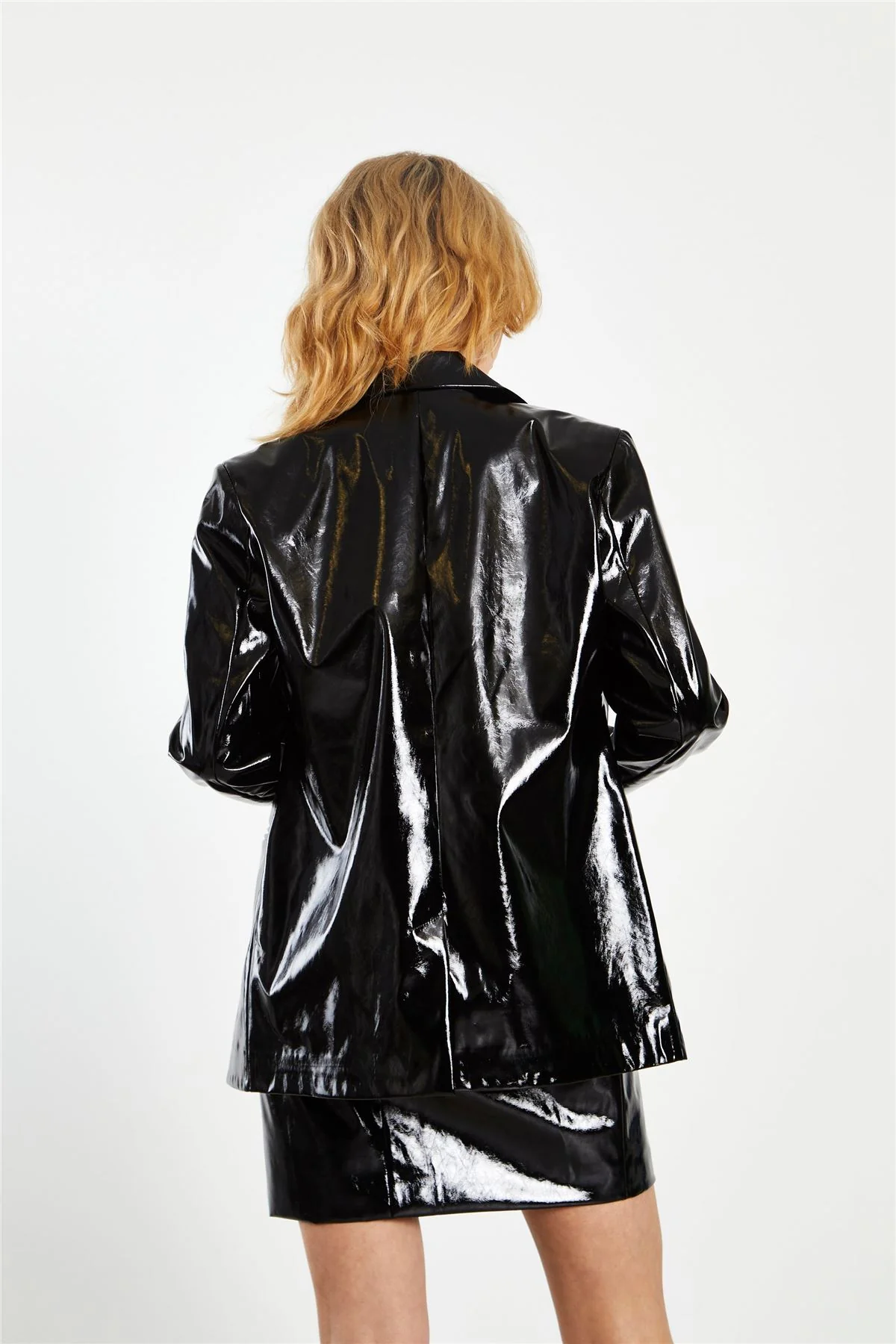 Black Patent PU Oversized Double Breasted Blazer
