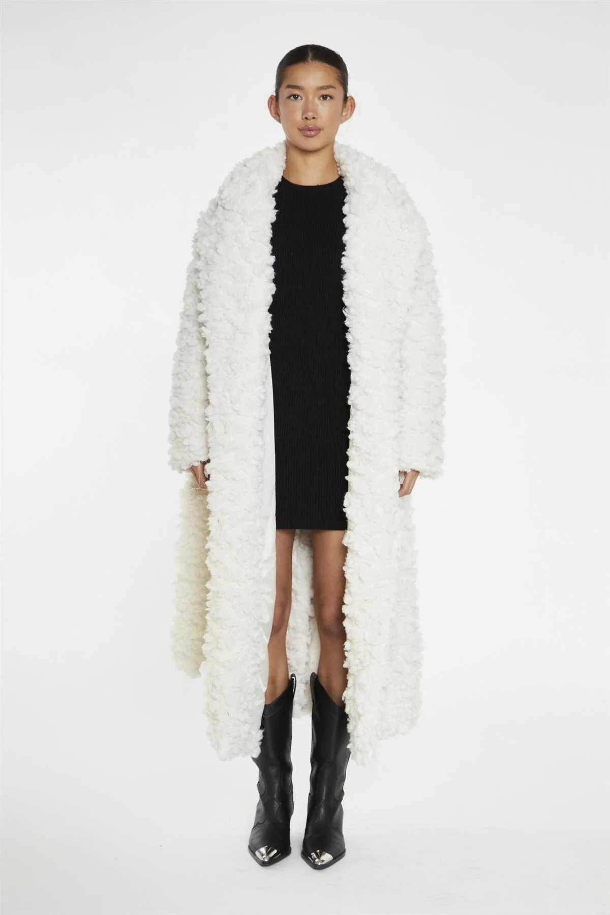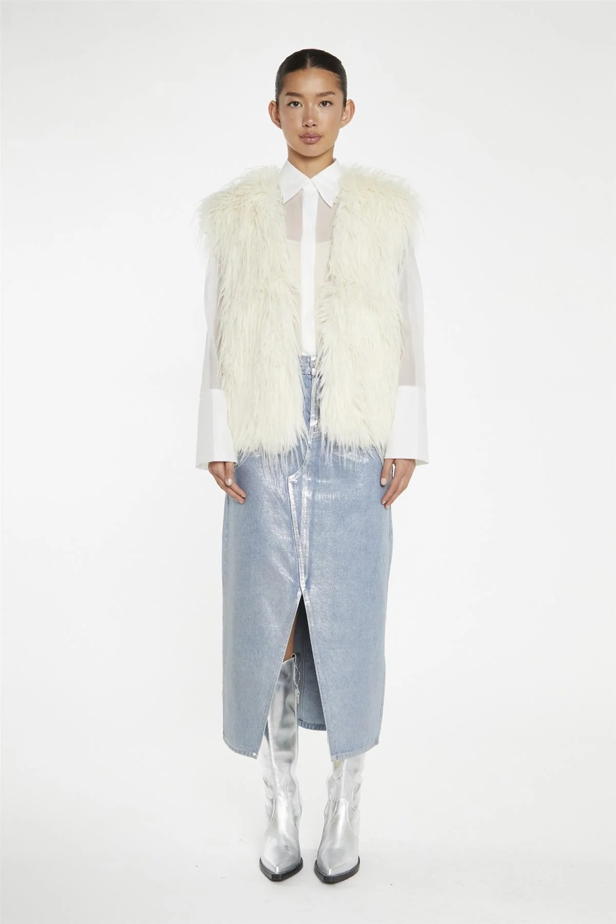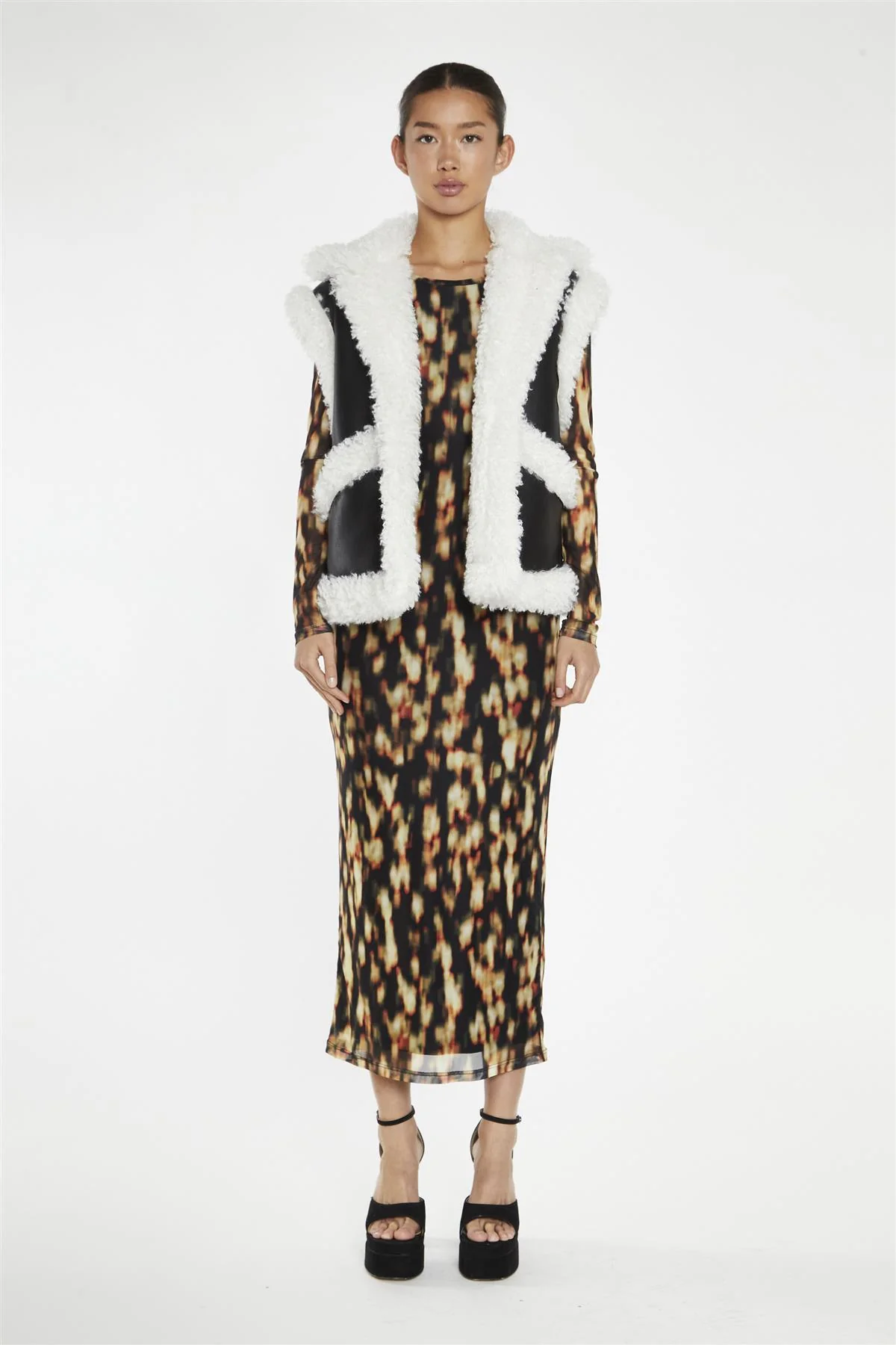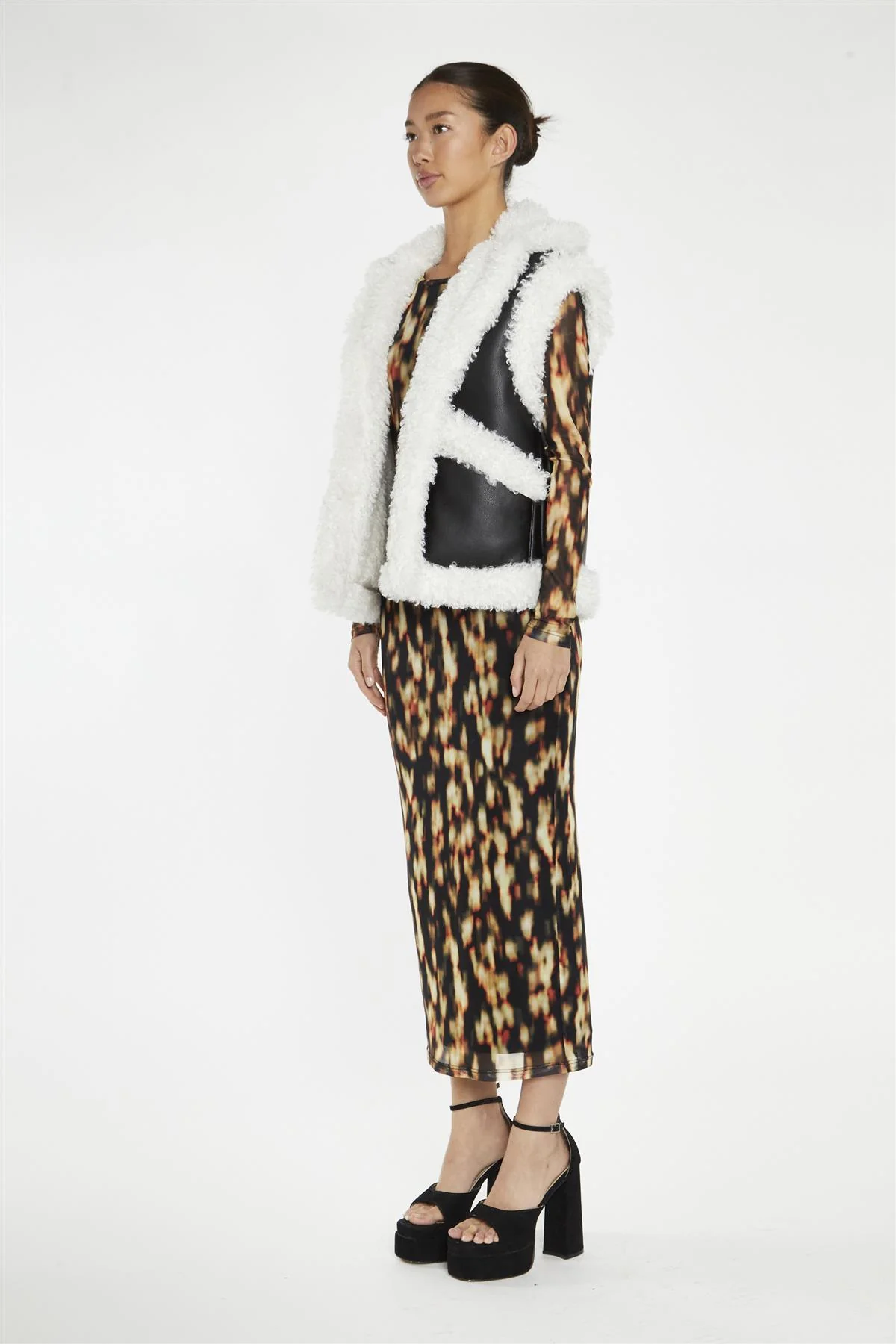 Black-White Faux-Shearling Trim Oversized-Gilet