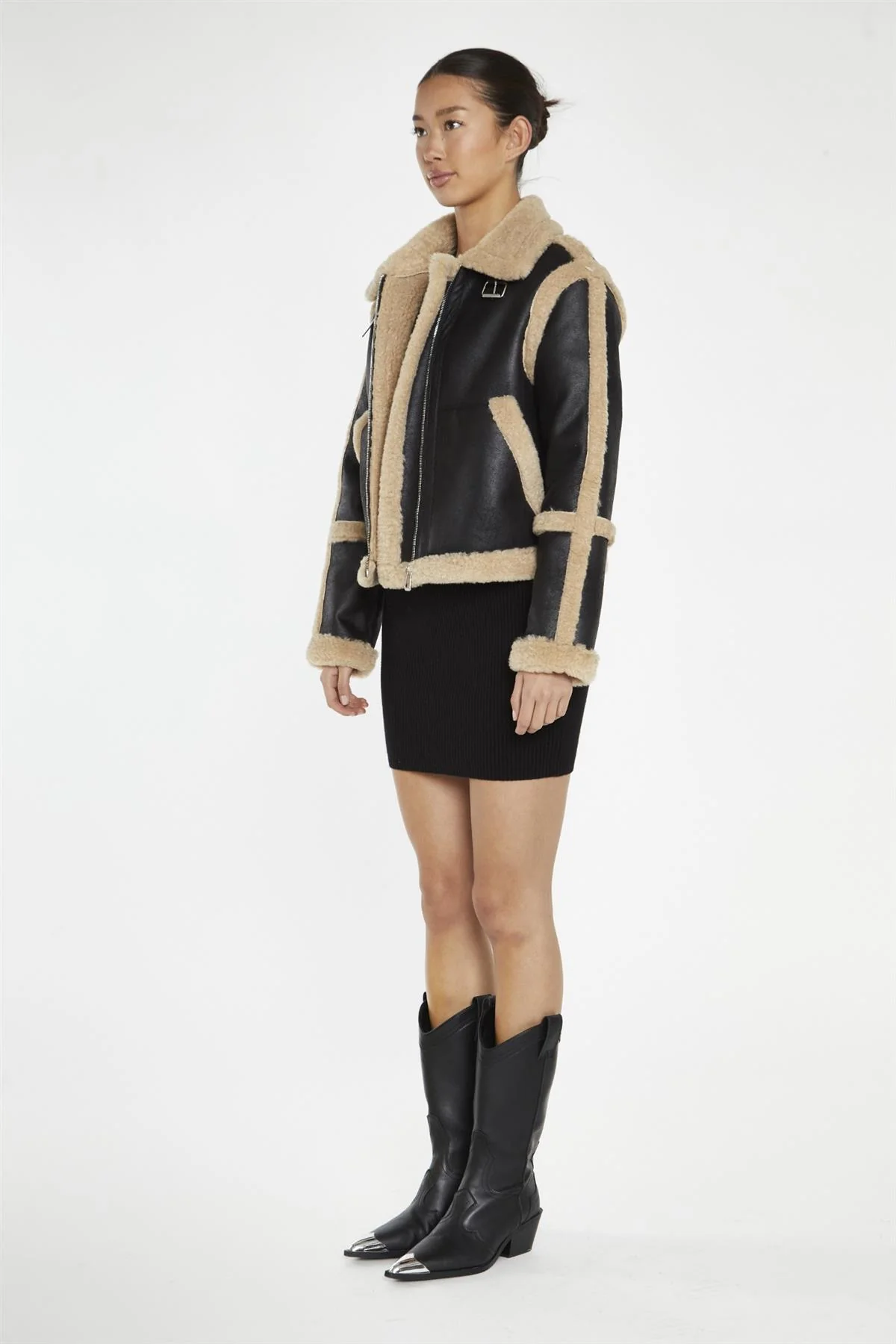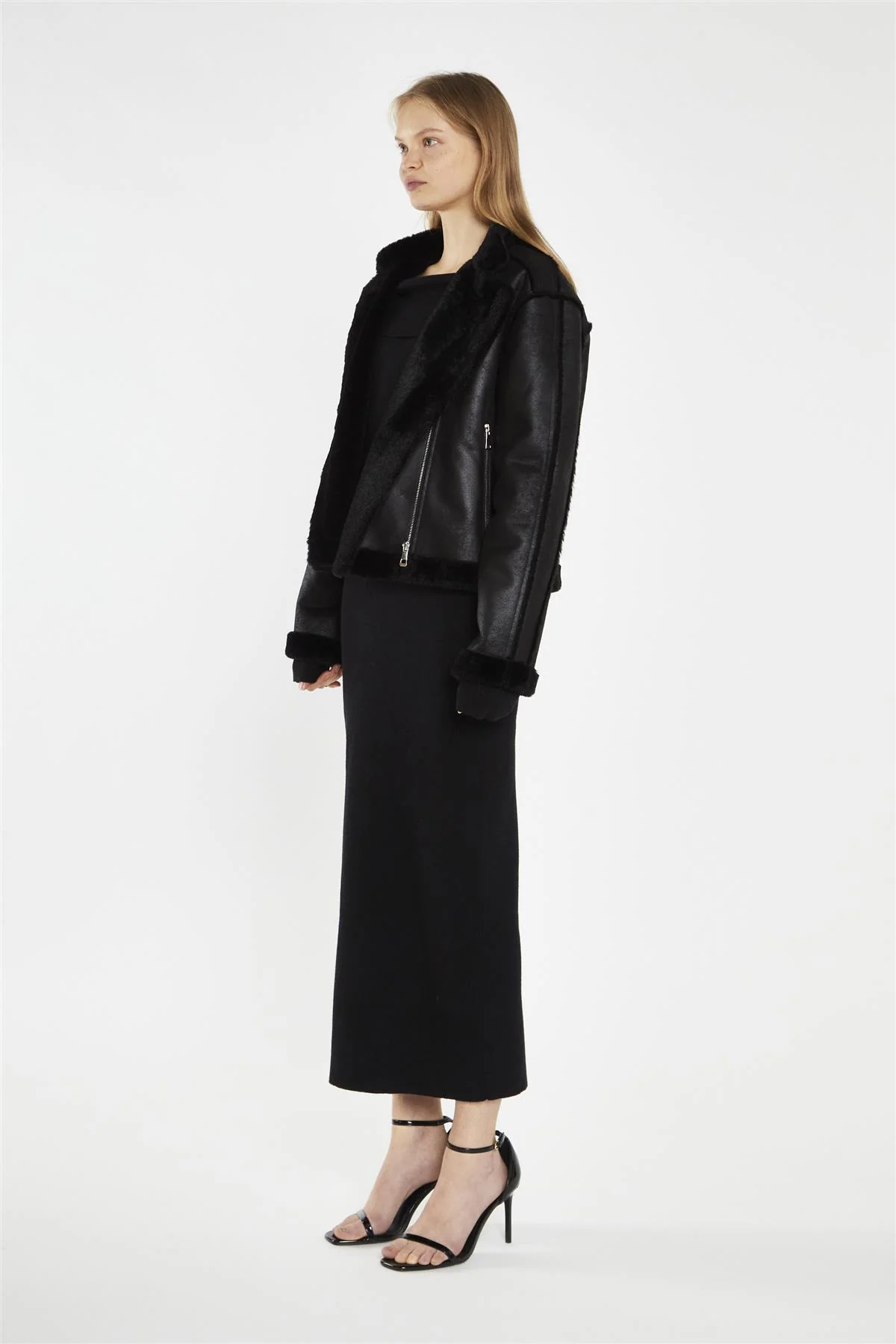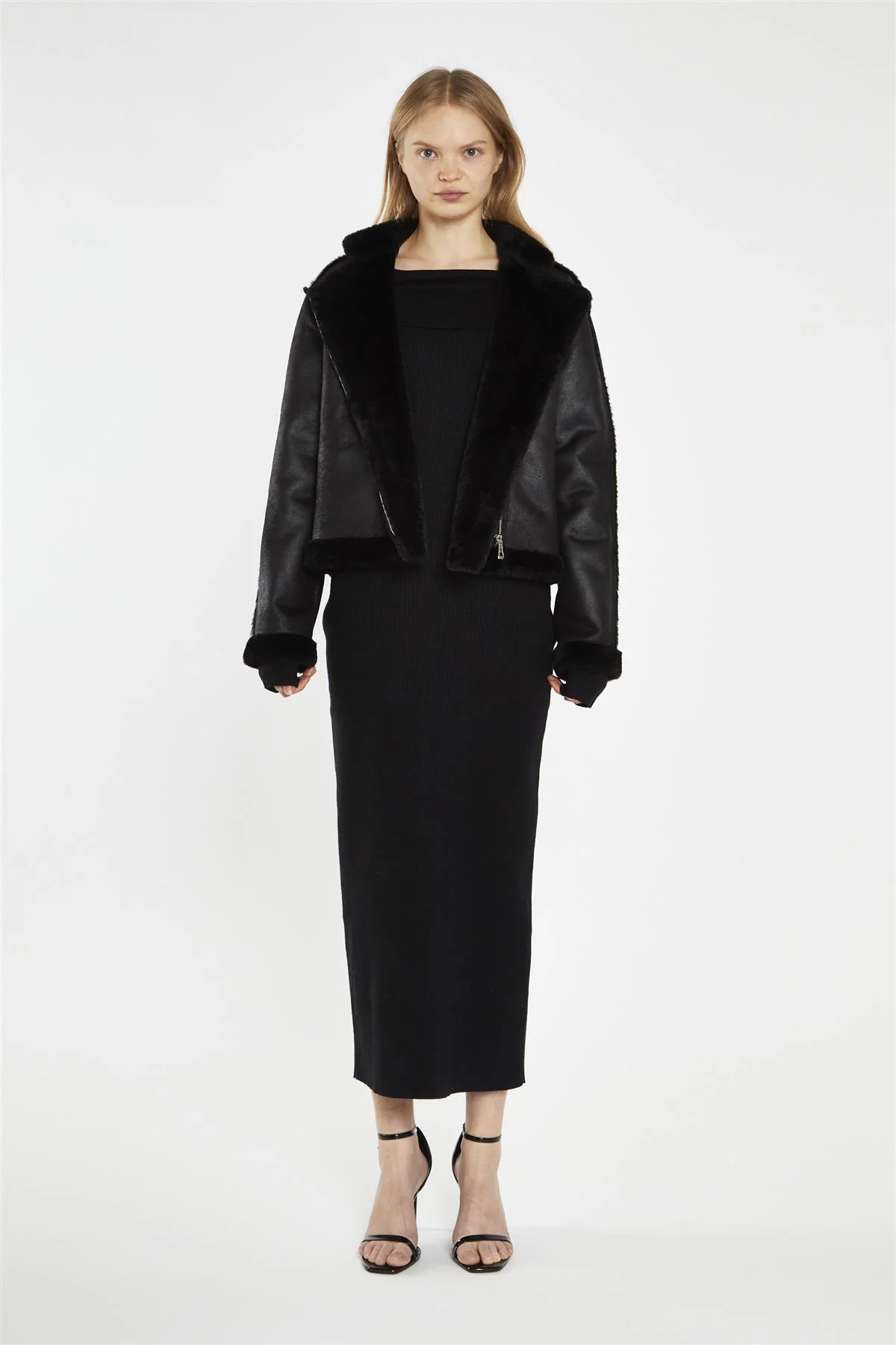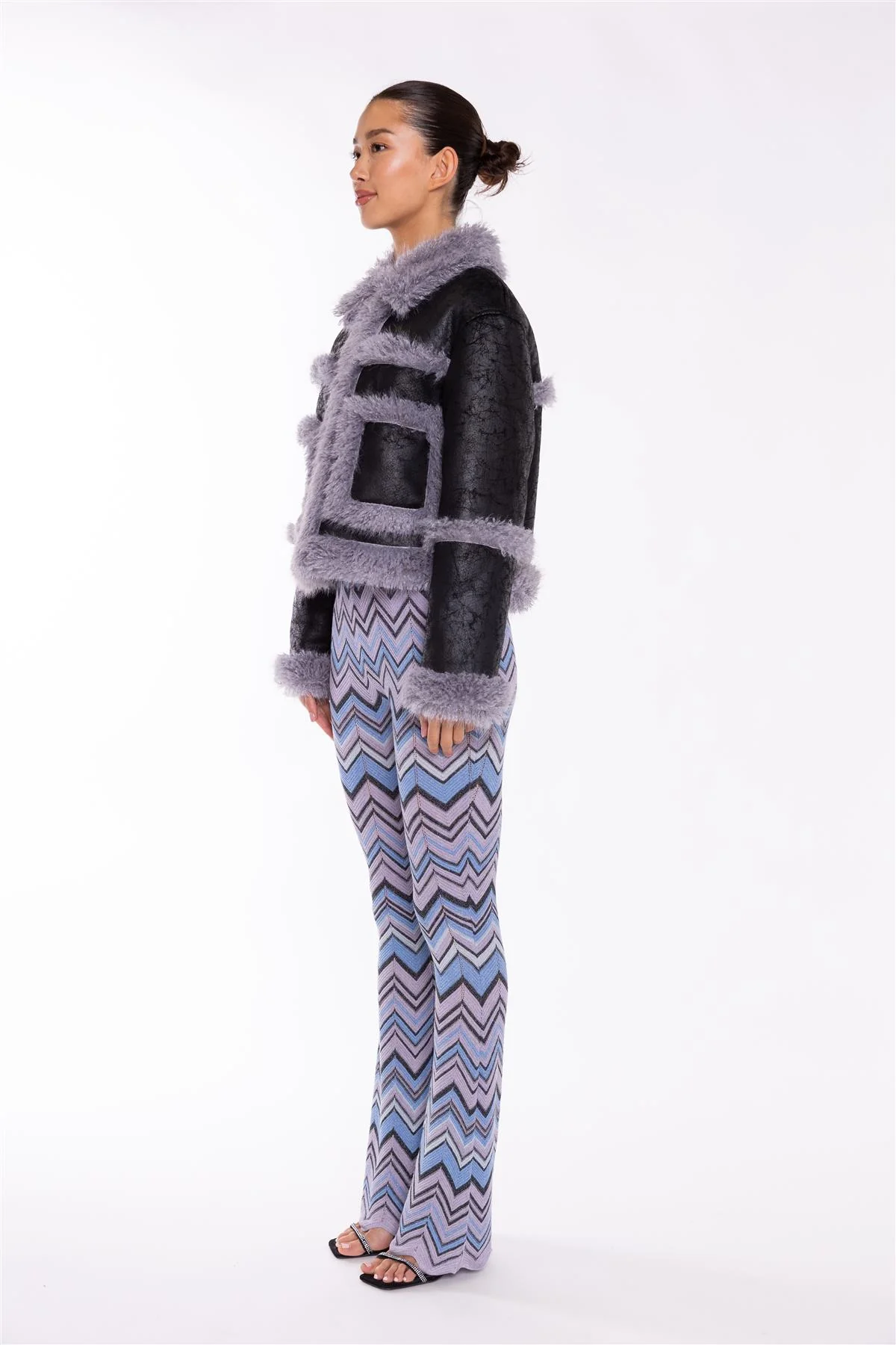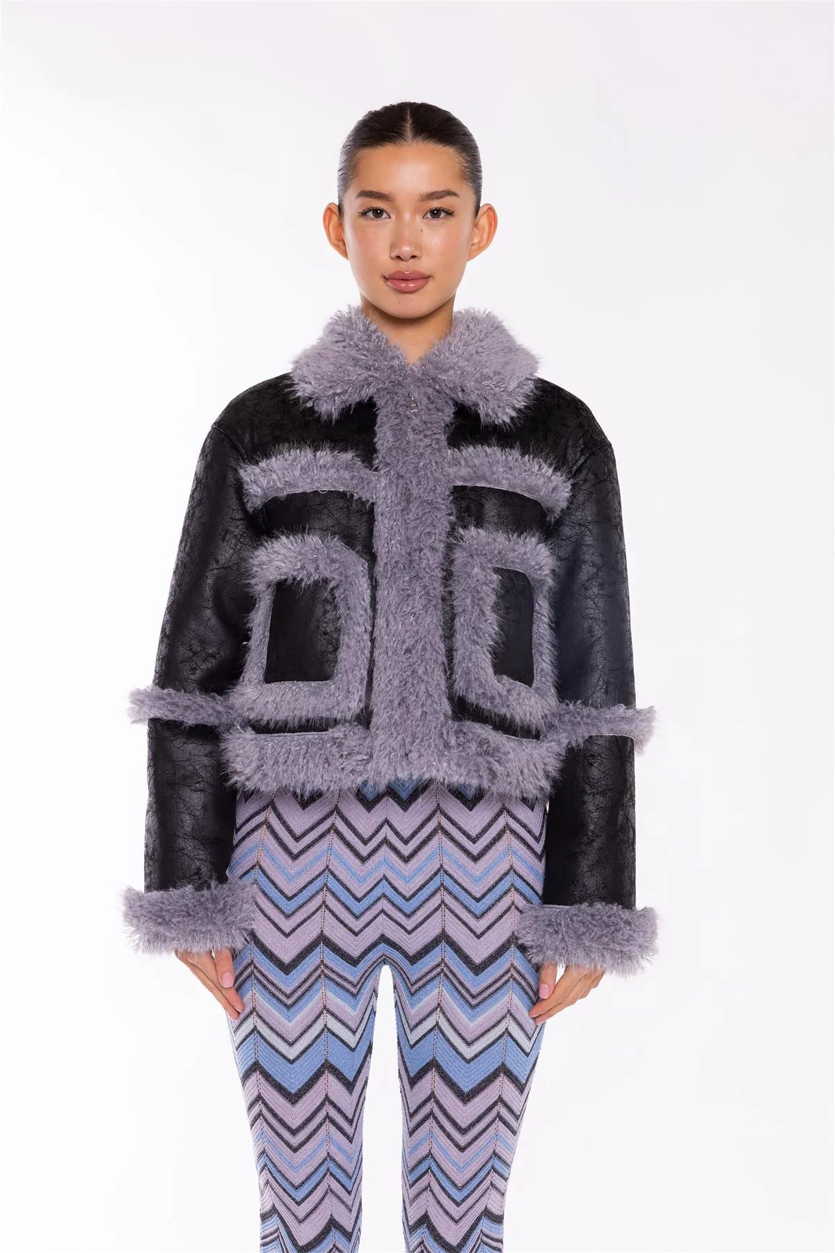 Black Steel-Grey Shearling Trim Cropped-Jacket