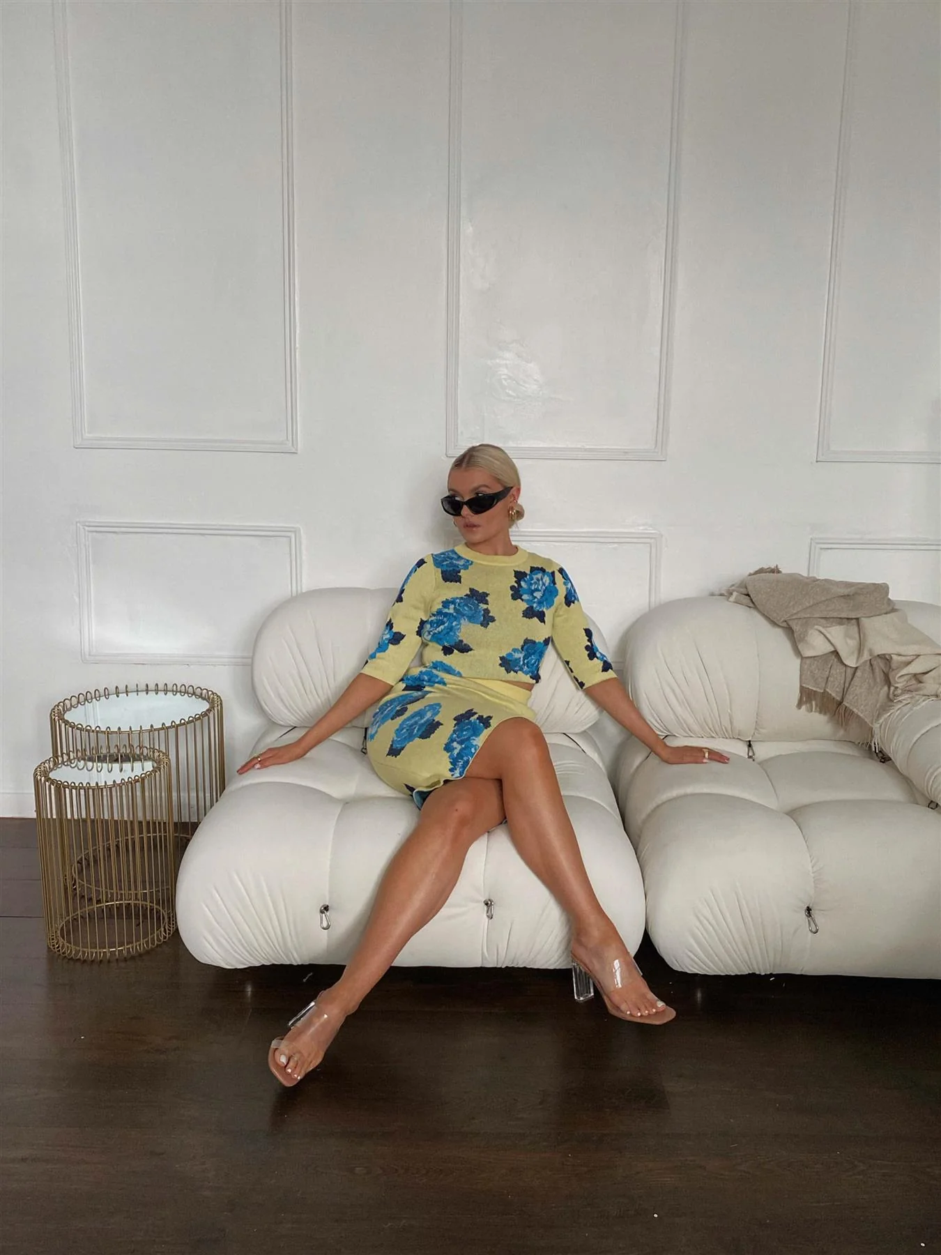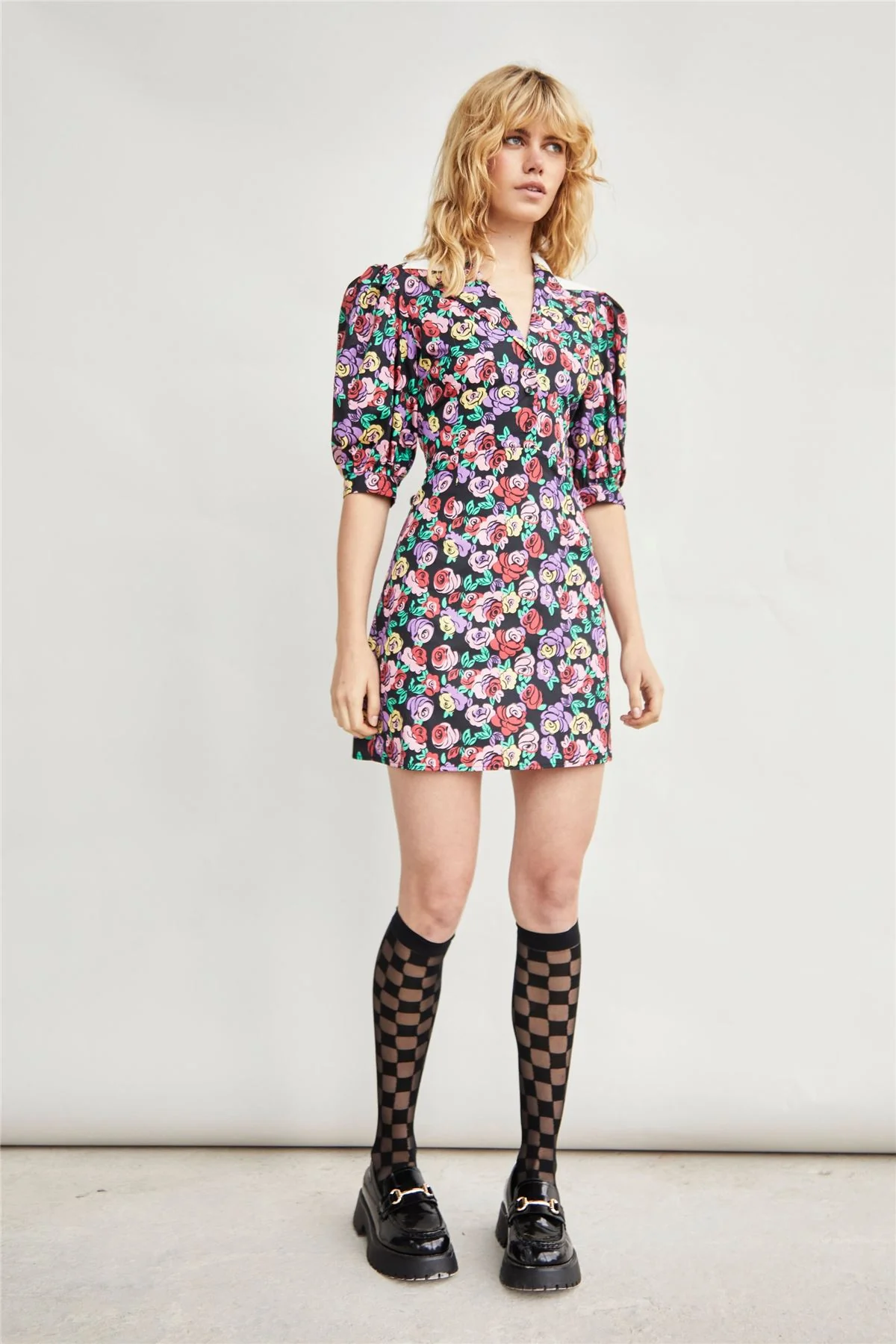 Stone Floral Stripe Sweetheart Neckline Mini-Dress