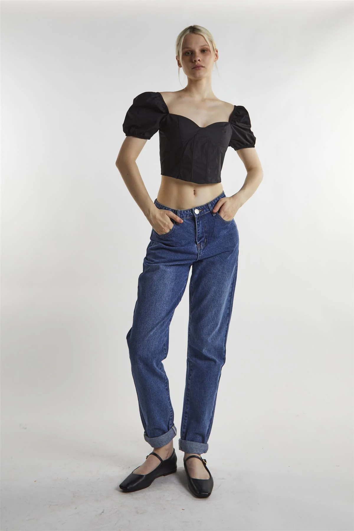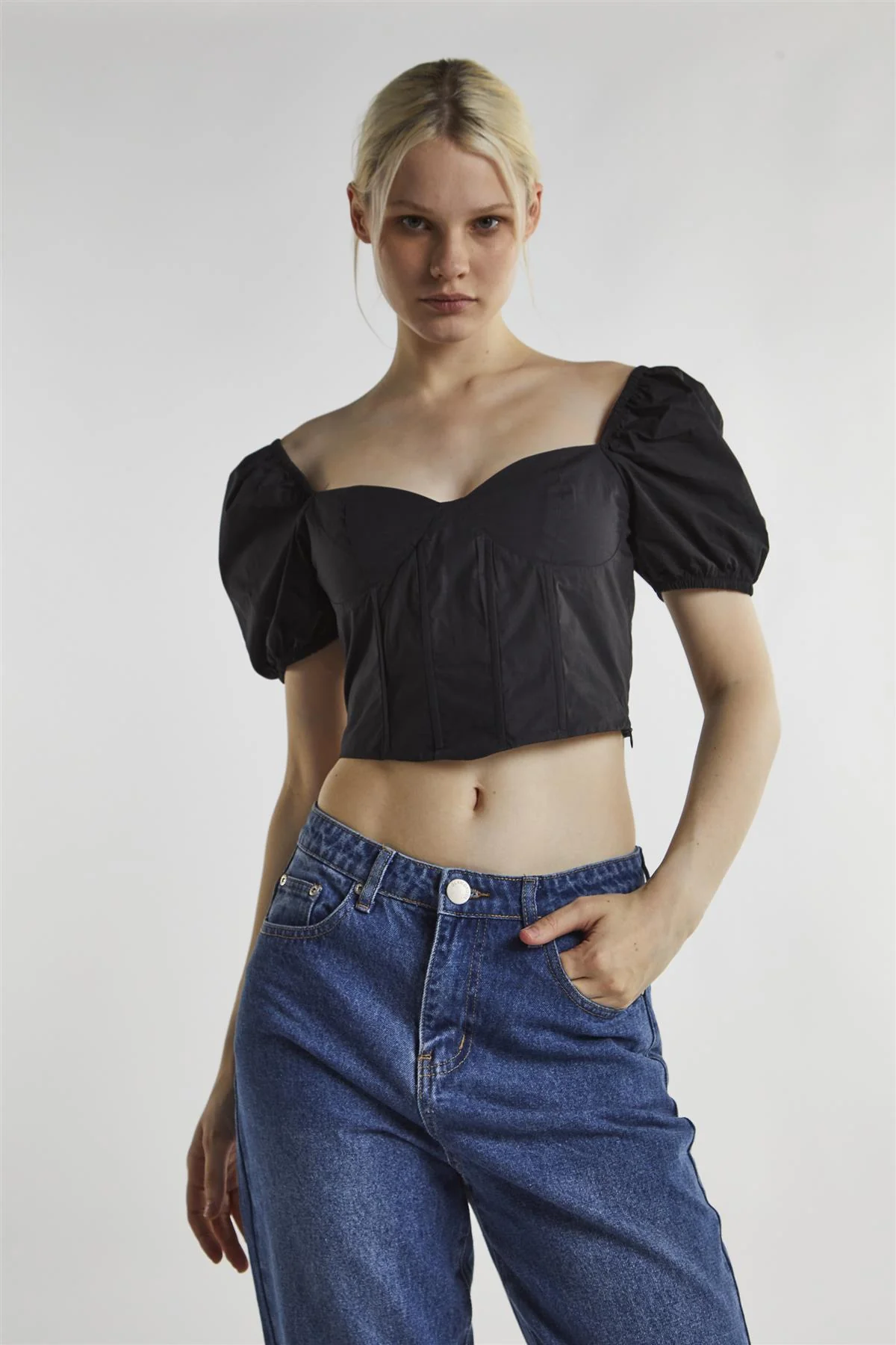 Black Sweetheart Neckline Crop-top