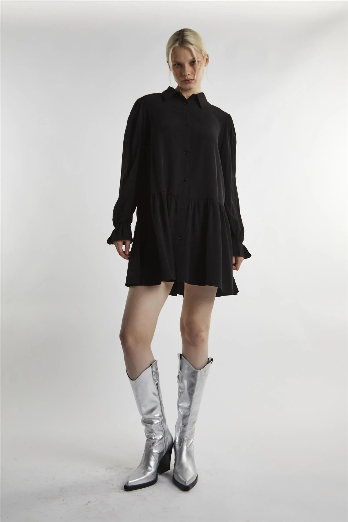 Black Collared Mini-Dress