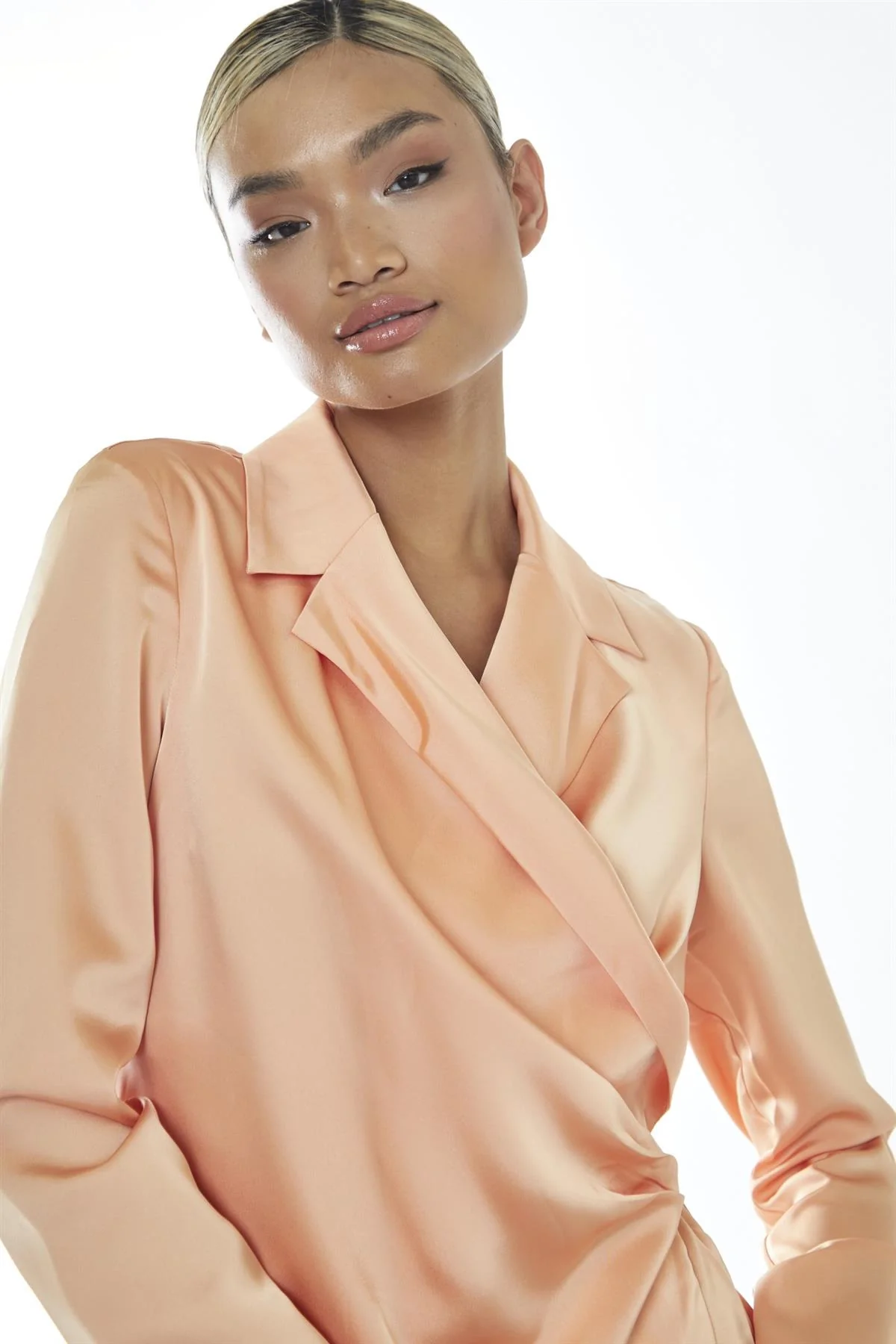 Peach Wrap Shirt Mini-Dress