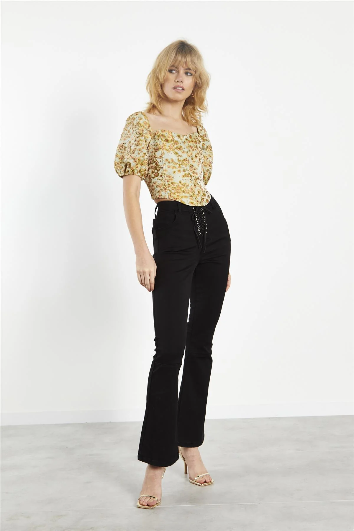 Sunflower-Brocade Square-Neck Corset-Top