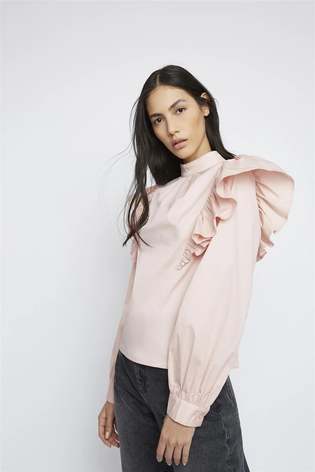 Pink Frill Shoulder Long-Sleeve-Top