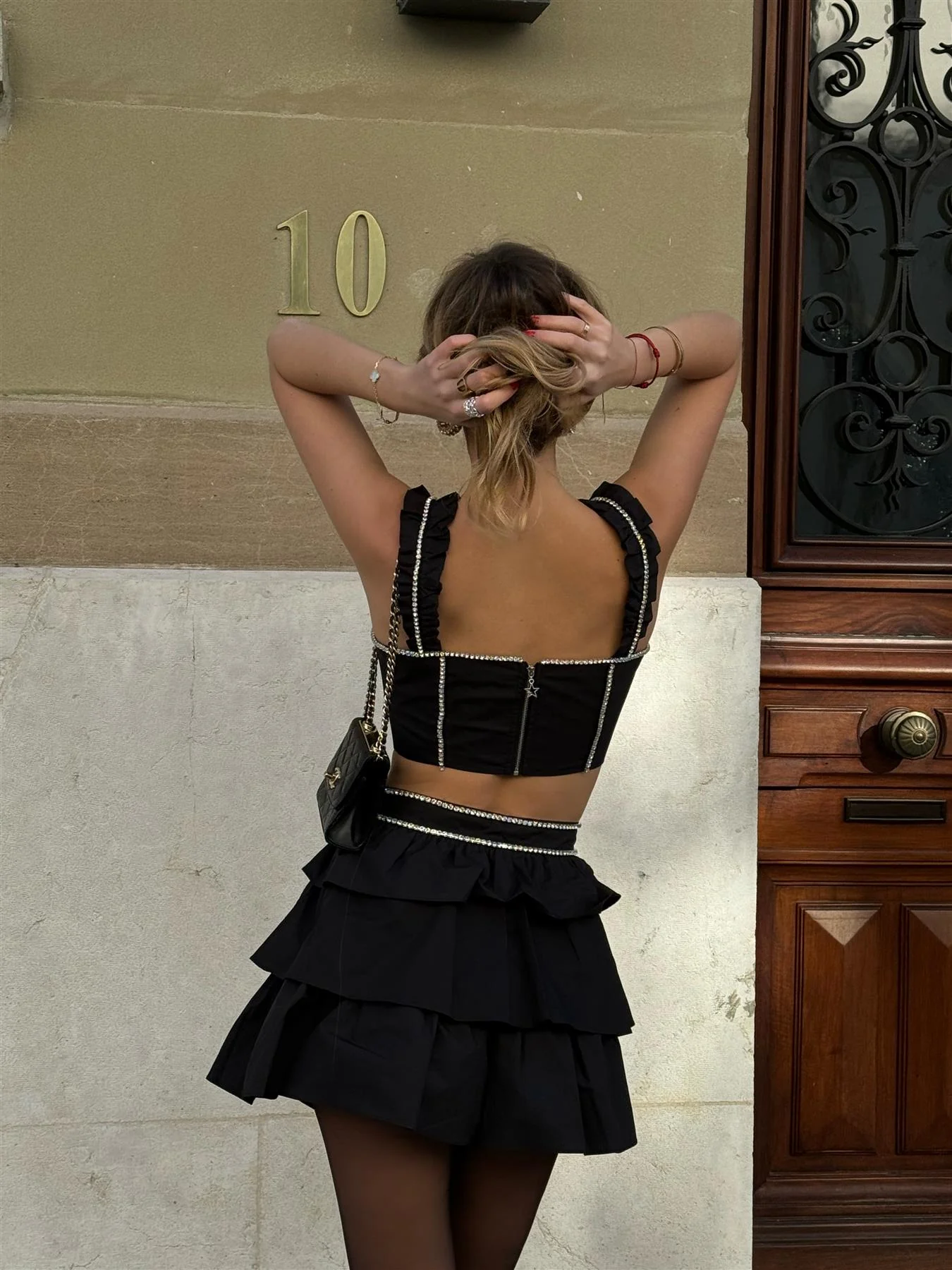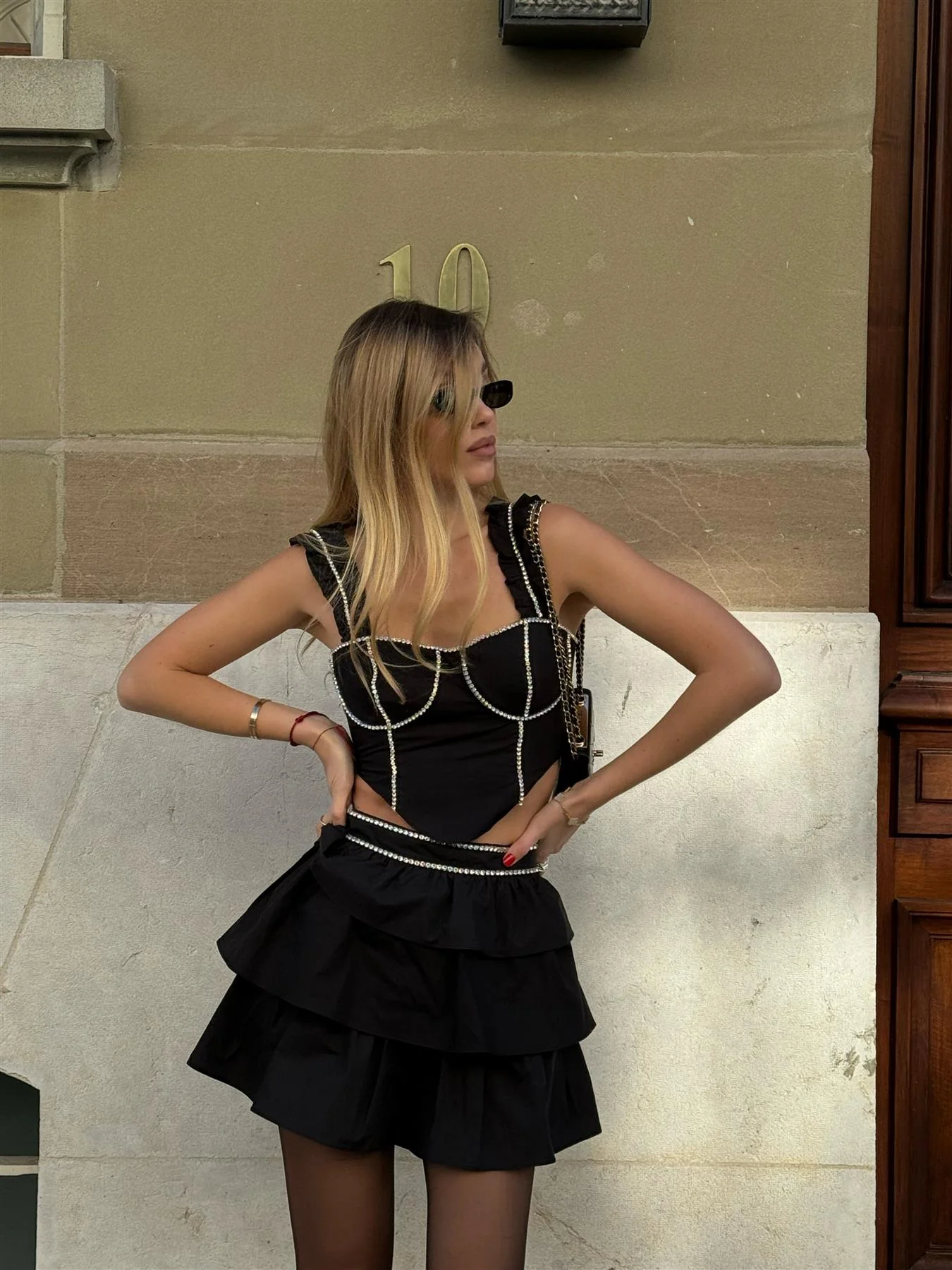 Black Diamante-Trim Corset-Top