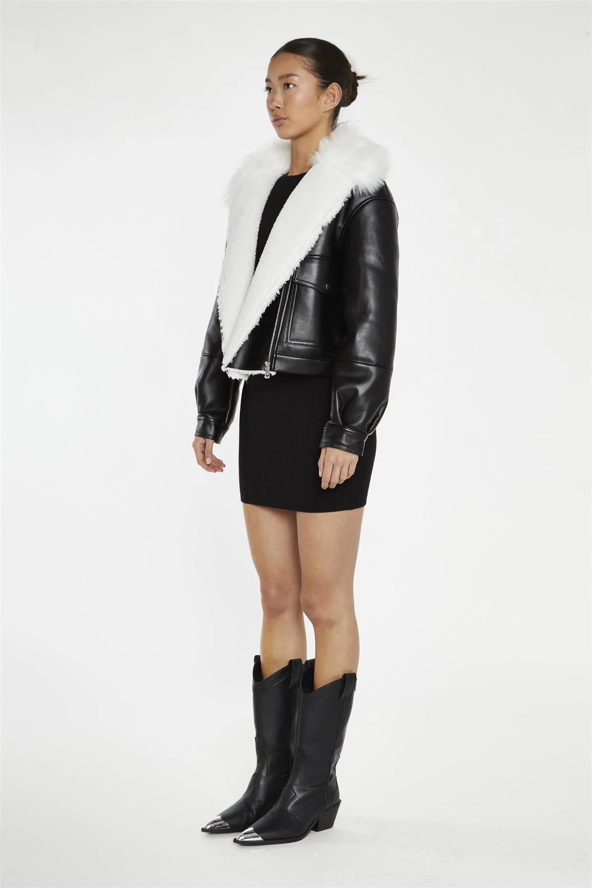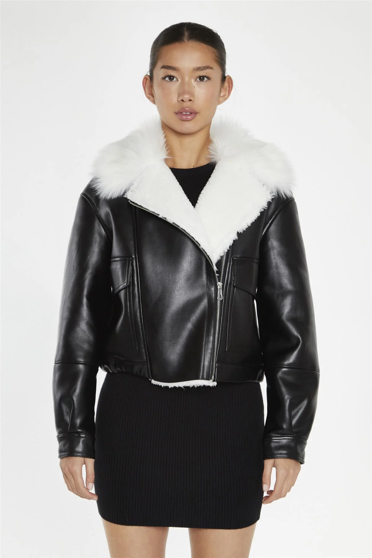 Black-White Faux-Fur PU Jacket