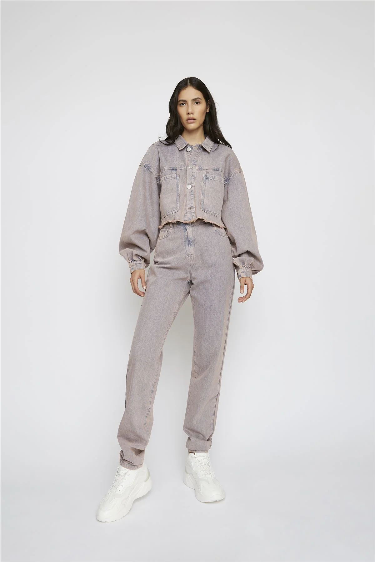 Pink-Tint Straight-Leg High-Waisted Jeans