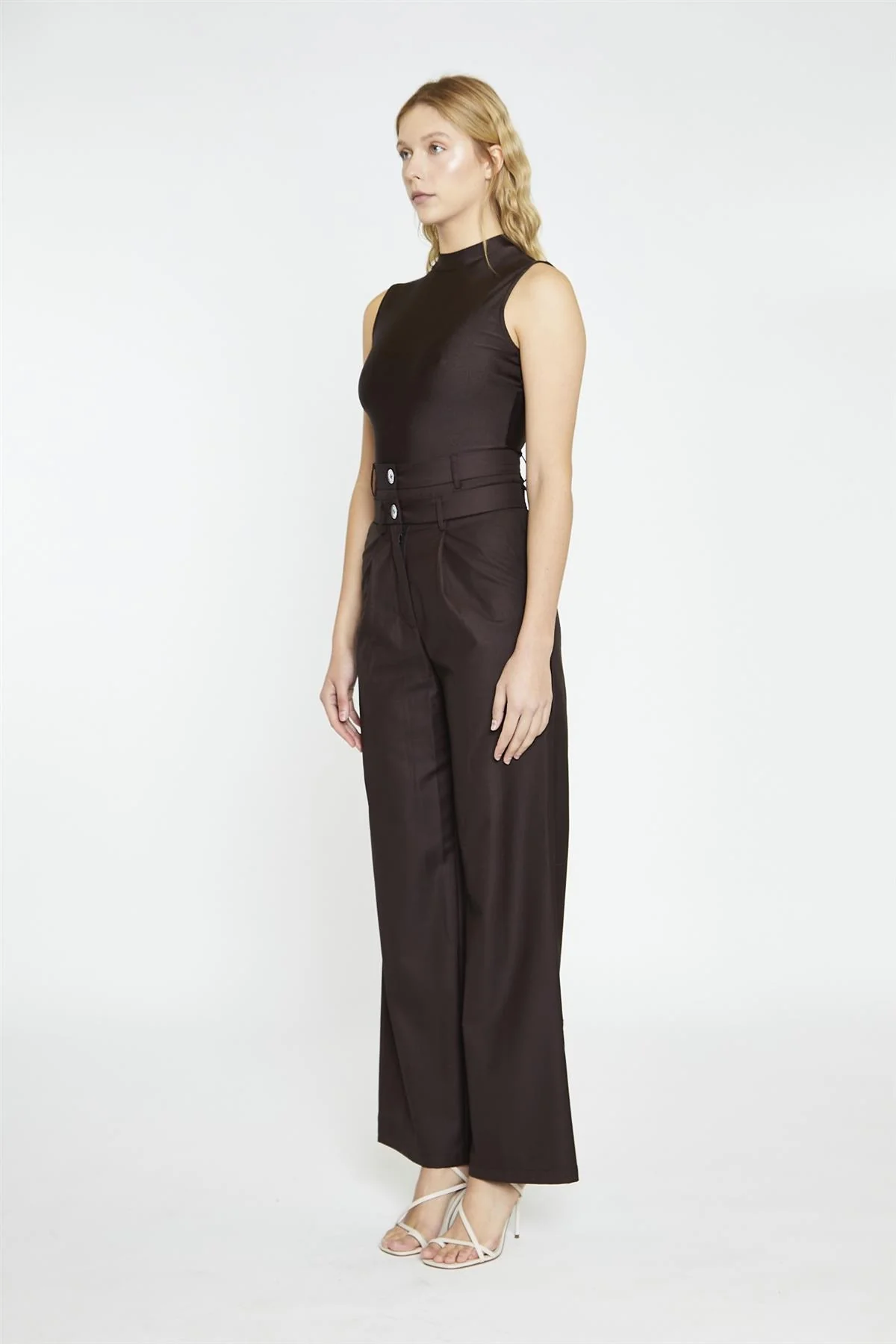 Dark Brown Turtle-Neck Sleeveless-Bodysuit