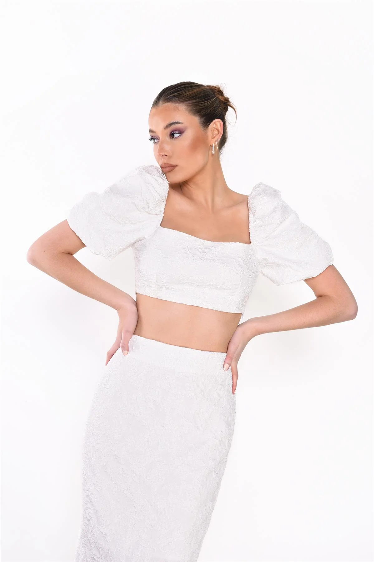 Off-White Jacquard Puff Sleeve Crop-Top