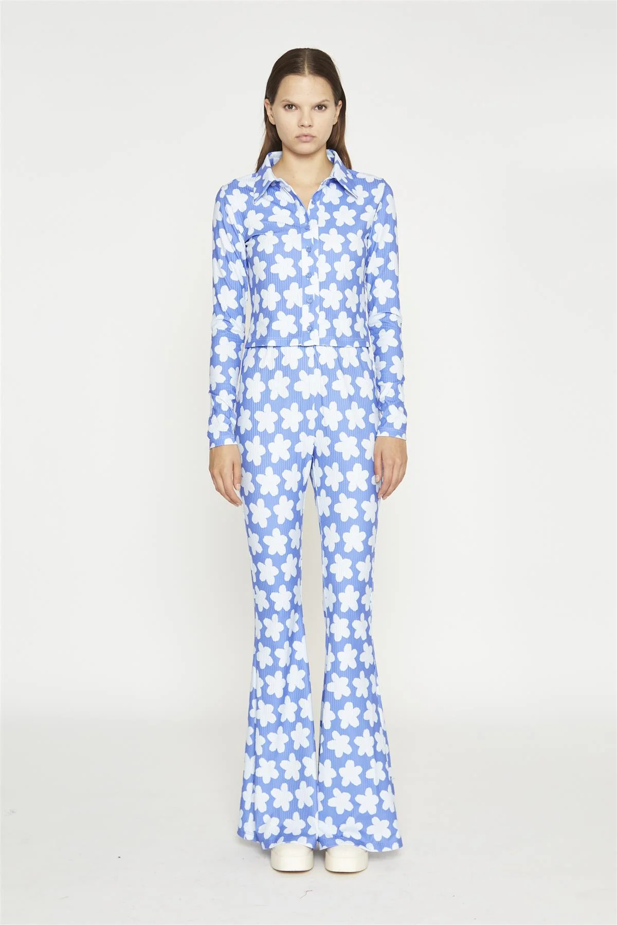 Blue-Large Flower Flared-Trousers