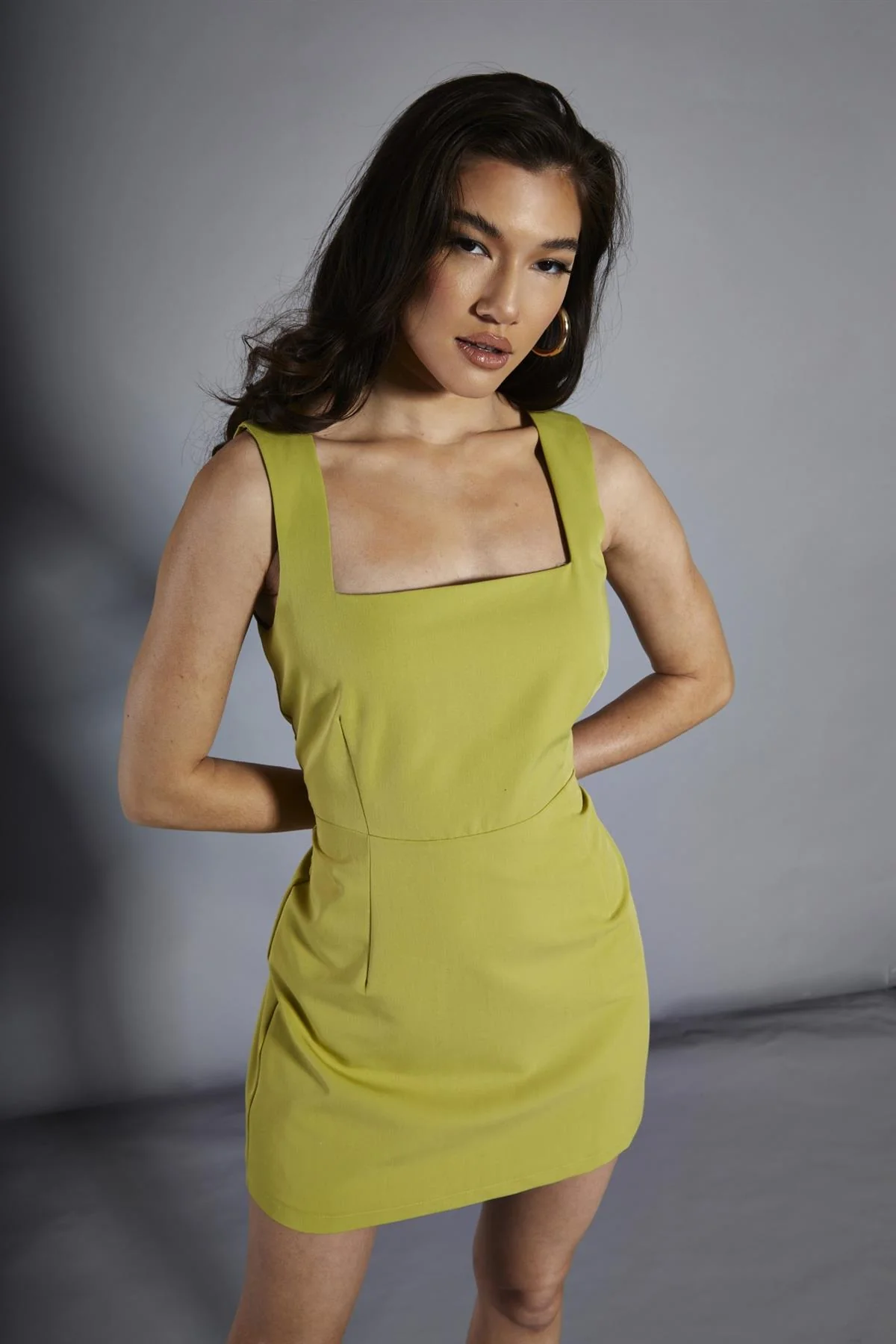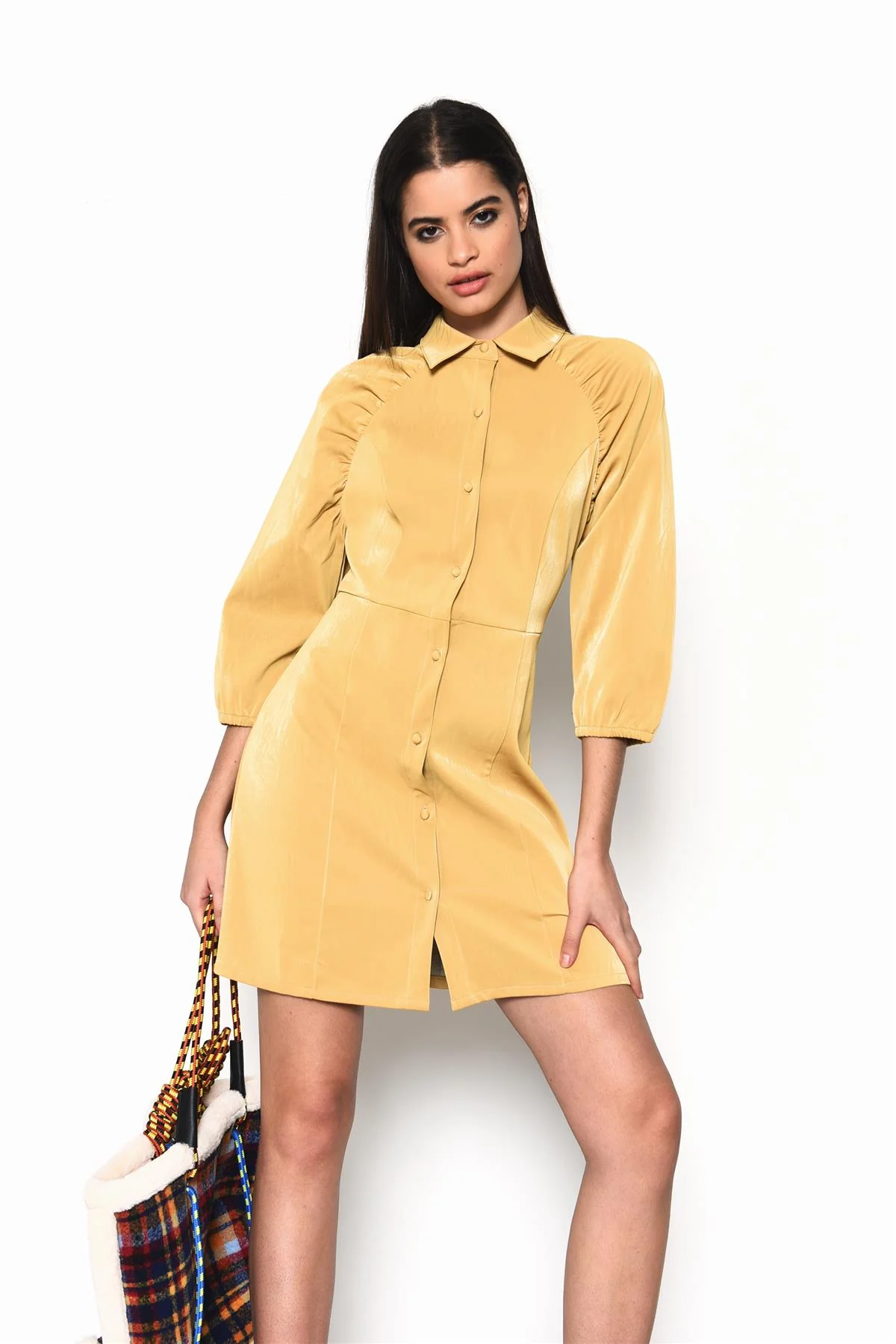 Bronze-Sequin Fixed Wrap Mini-Dress