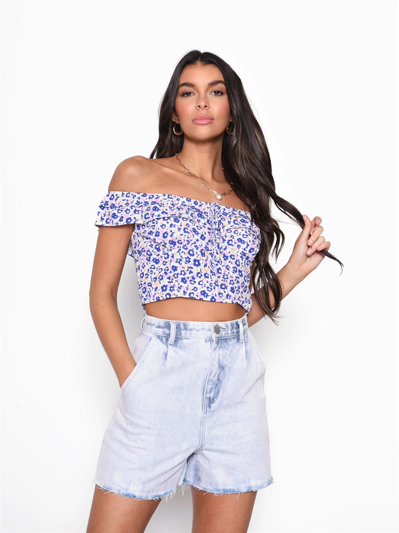 Purple Multi Ditsy Floral Frill Crop Top