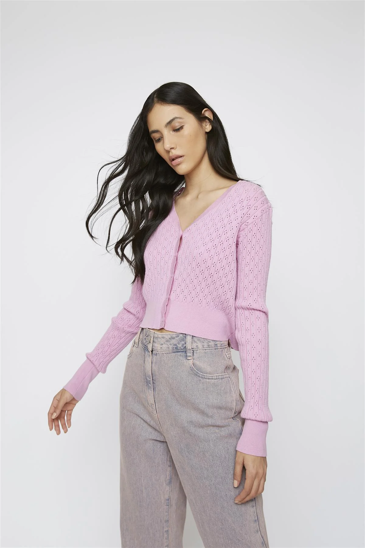 Orchid-Pink Long-sleeve Cropped-Cardigan