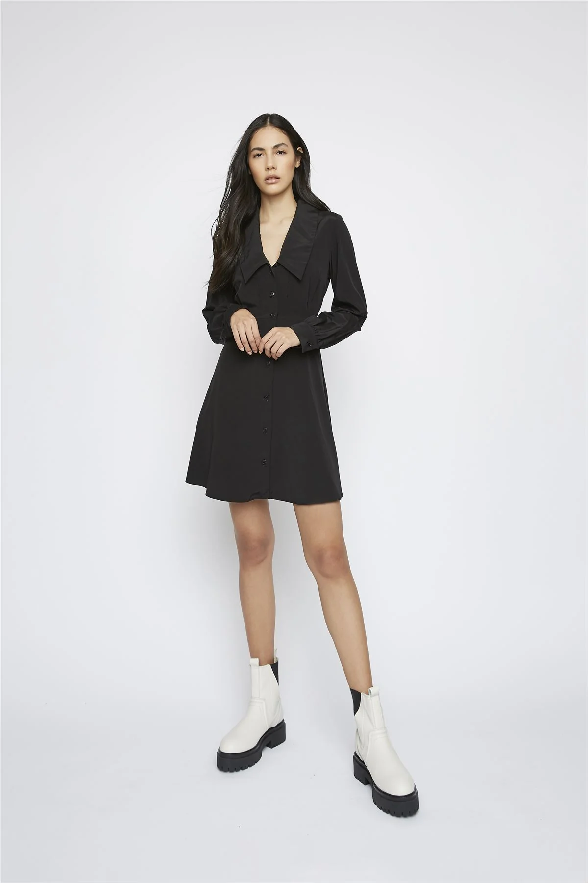 Black Long-Sleeve V-Neck Mini-Dress