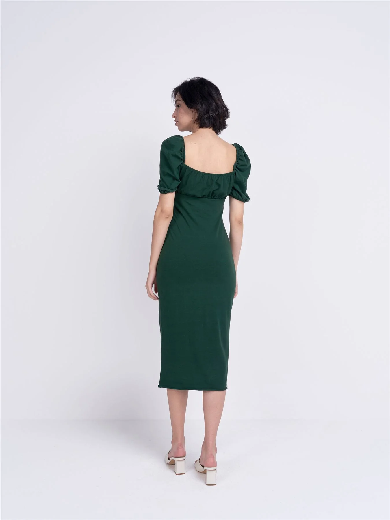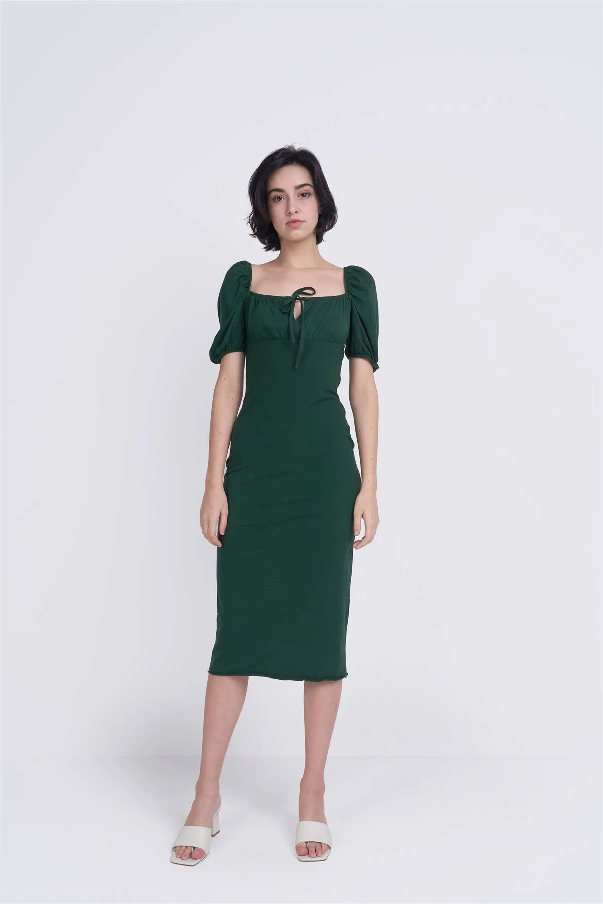 Forest Green Tie Front Midi Dress