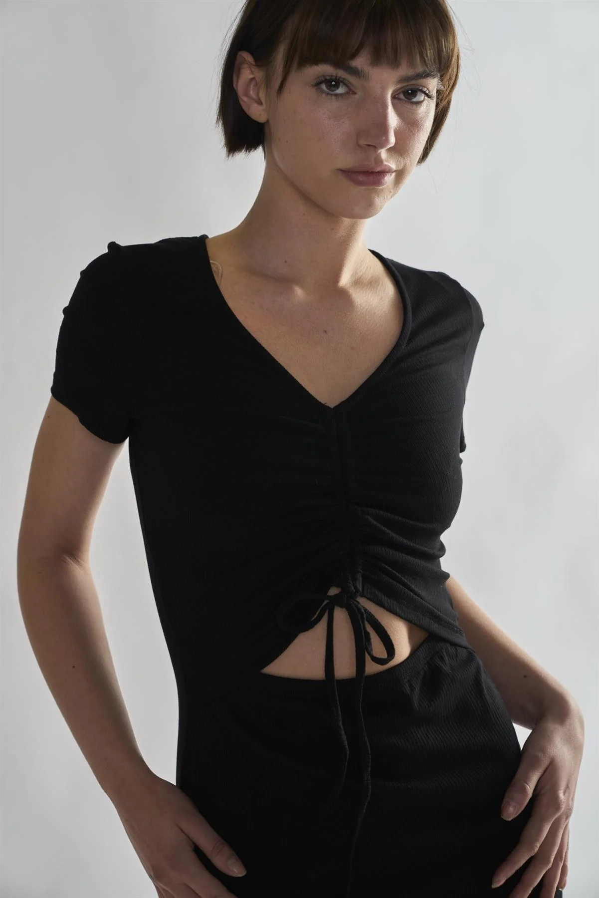 Dusty-Pink-Suede Tie-Front- 0-Bodysuit