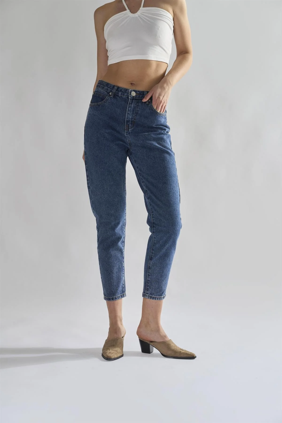 Mid Stonewash Straight Leg Slim Fit Jeans