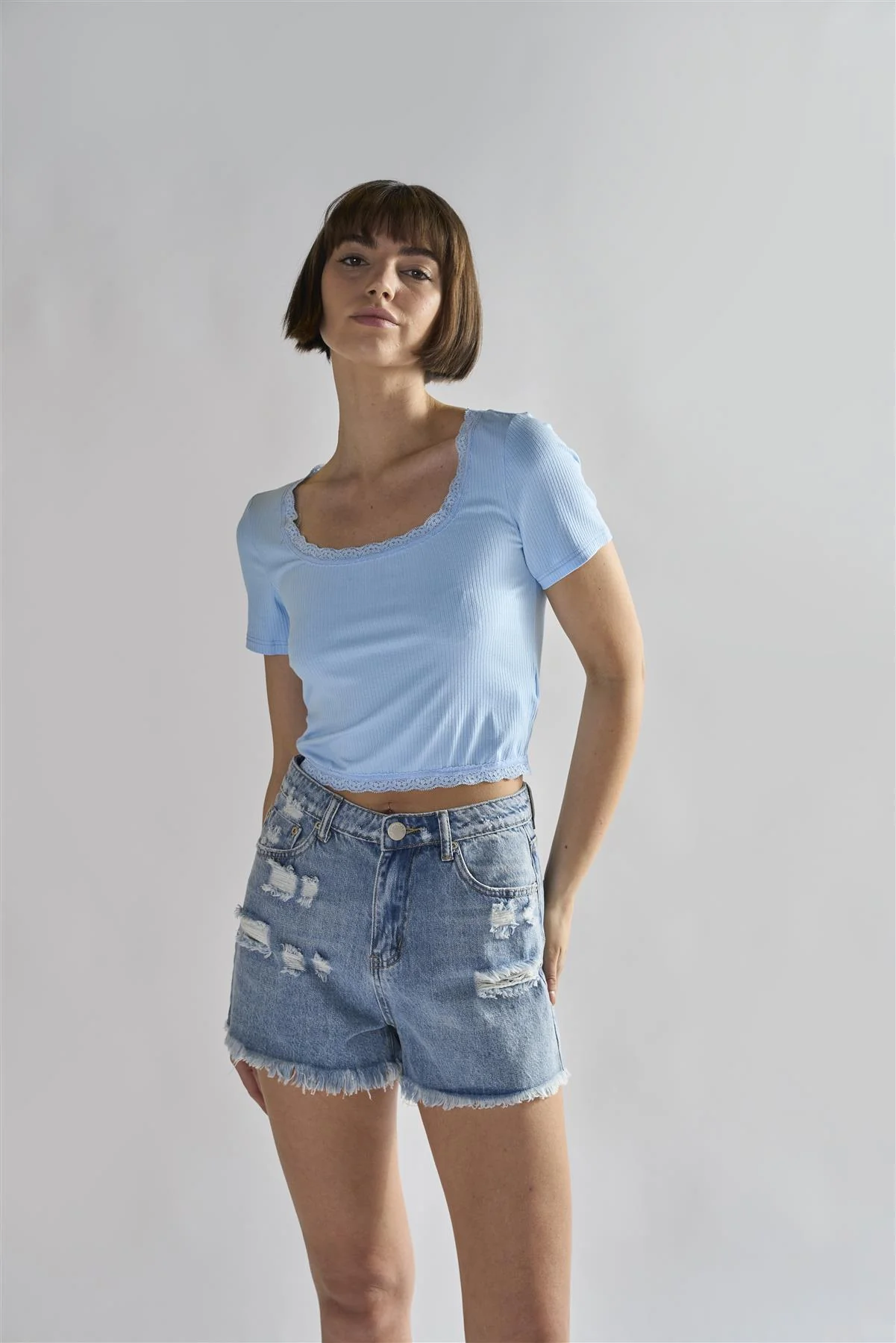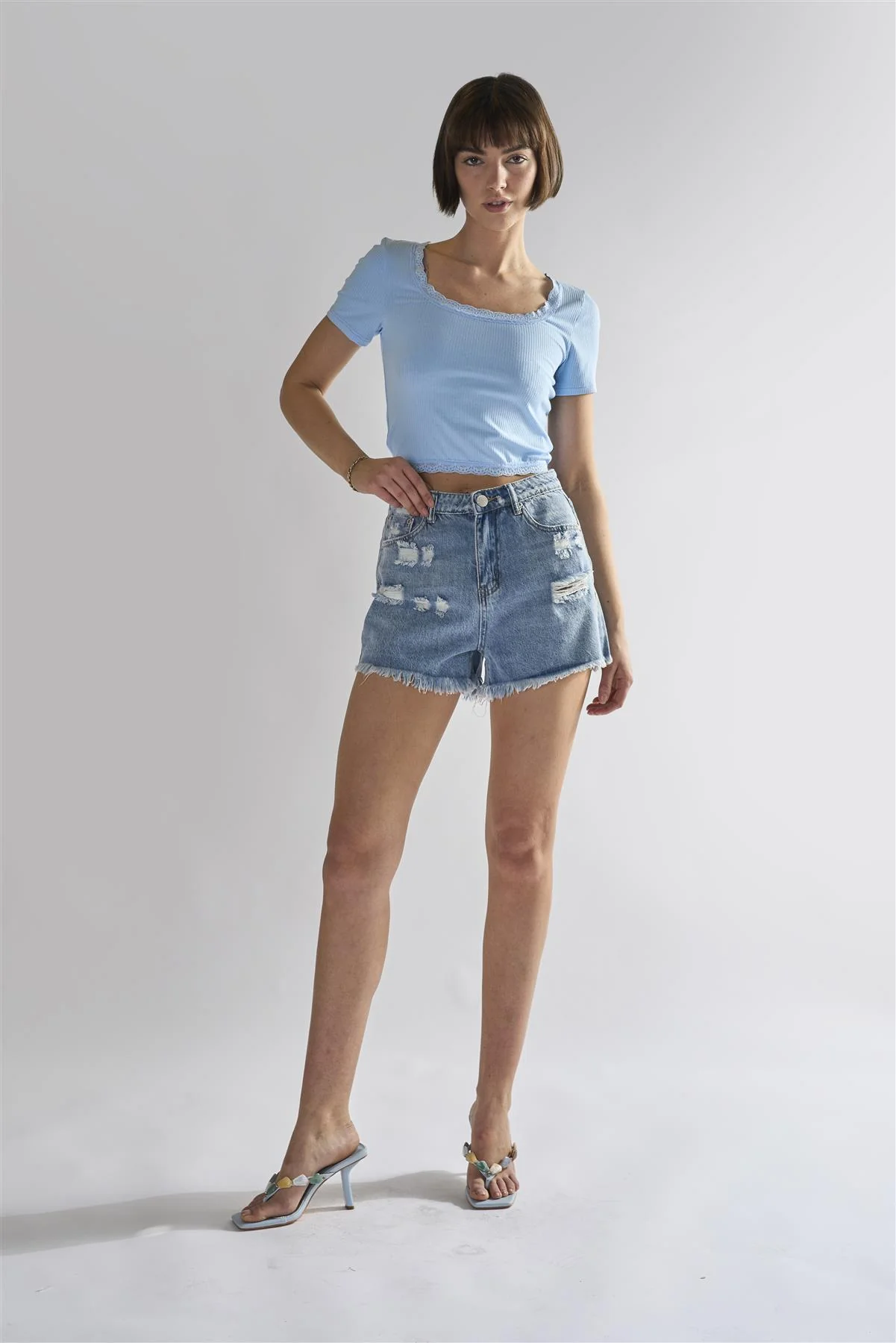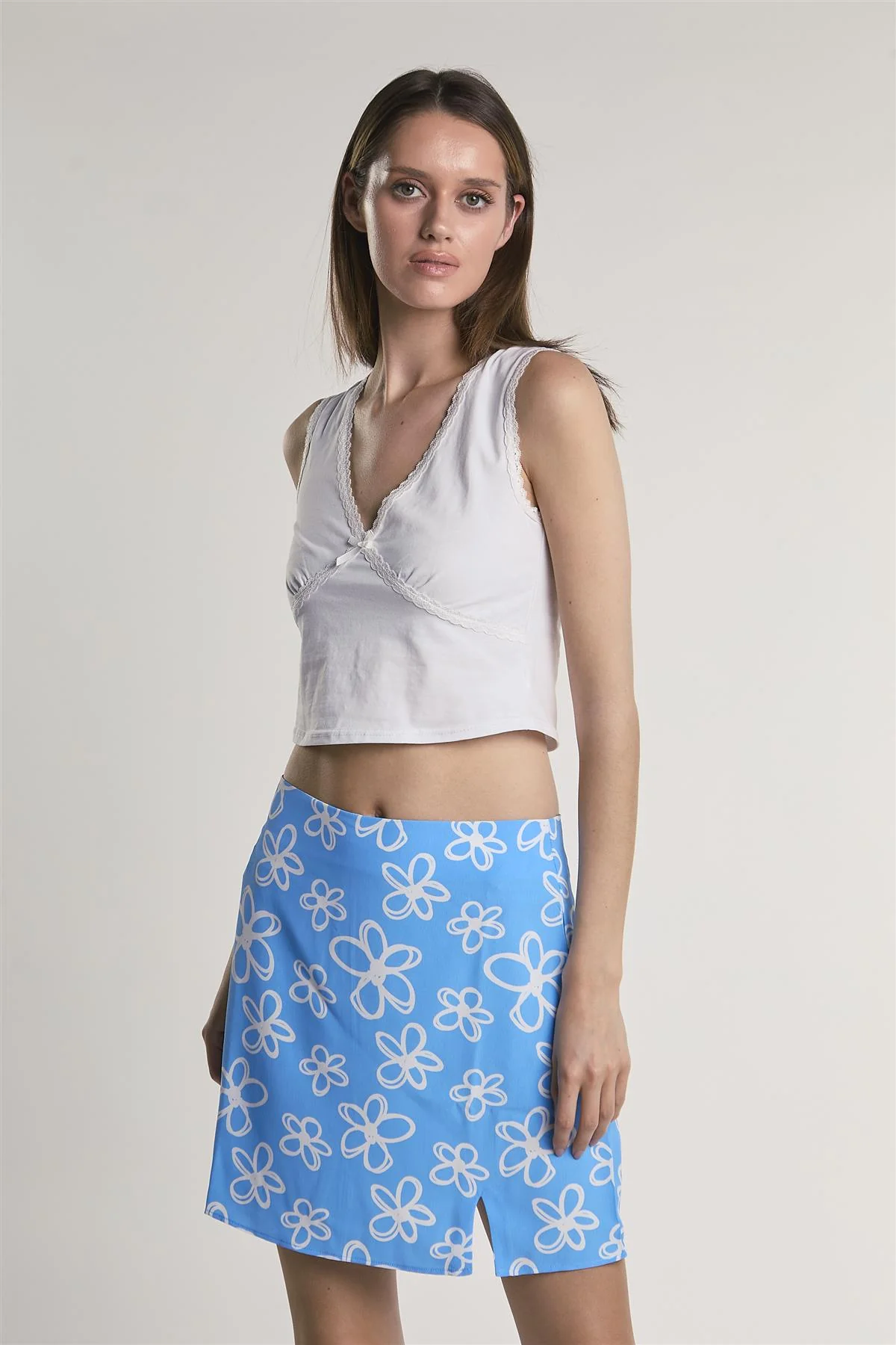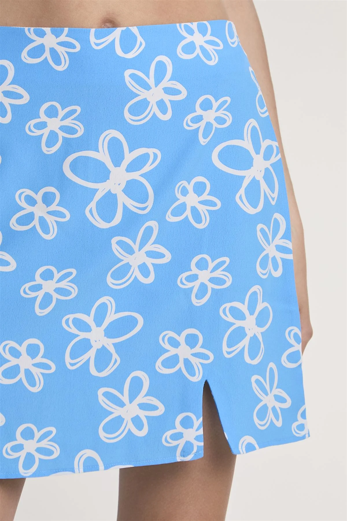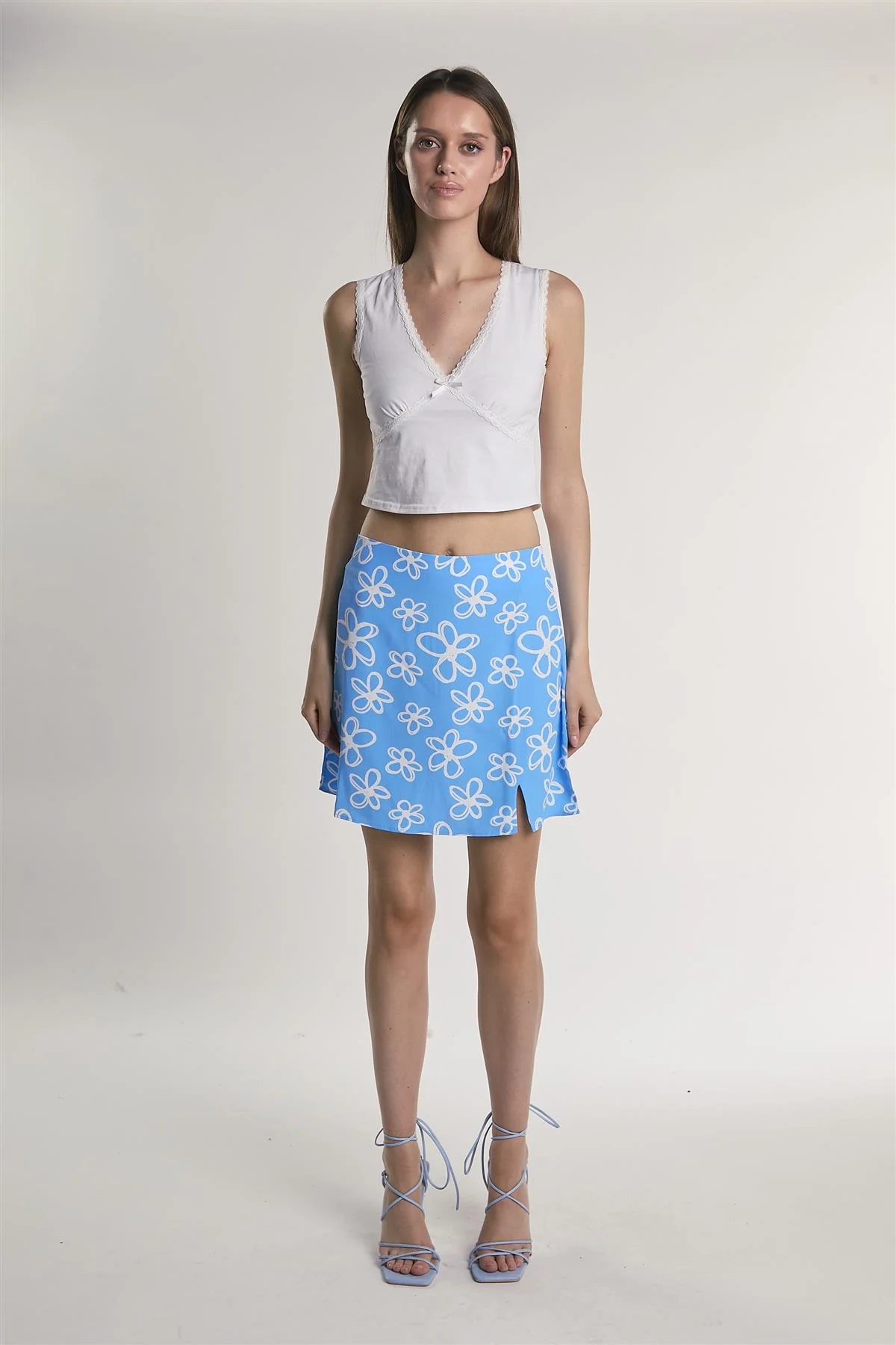 Blue-Scribble-Daisy Side-Slit Mini-Skirt