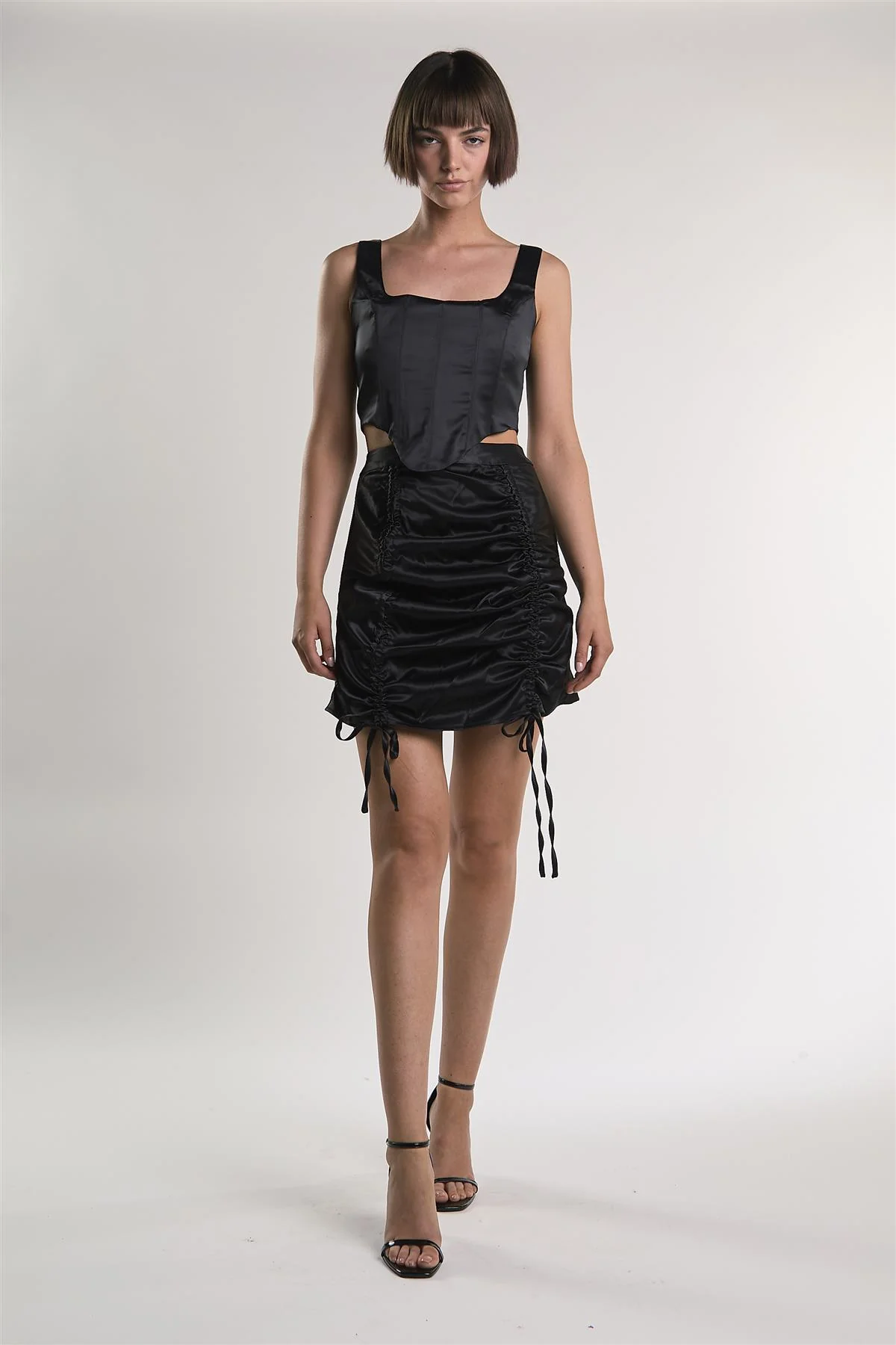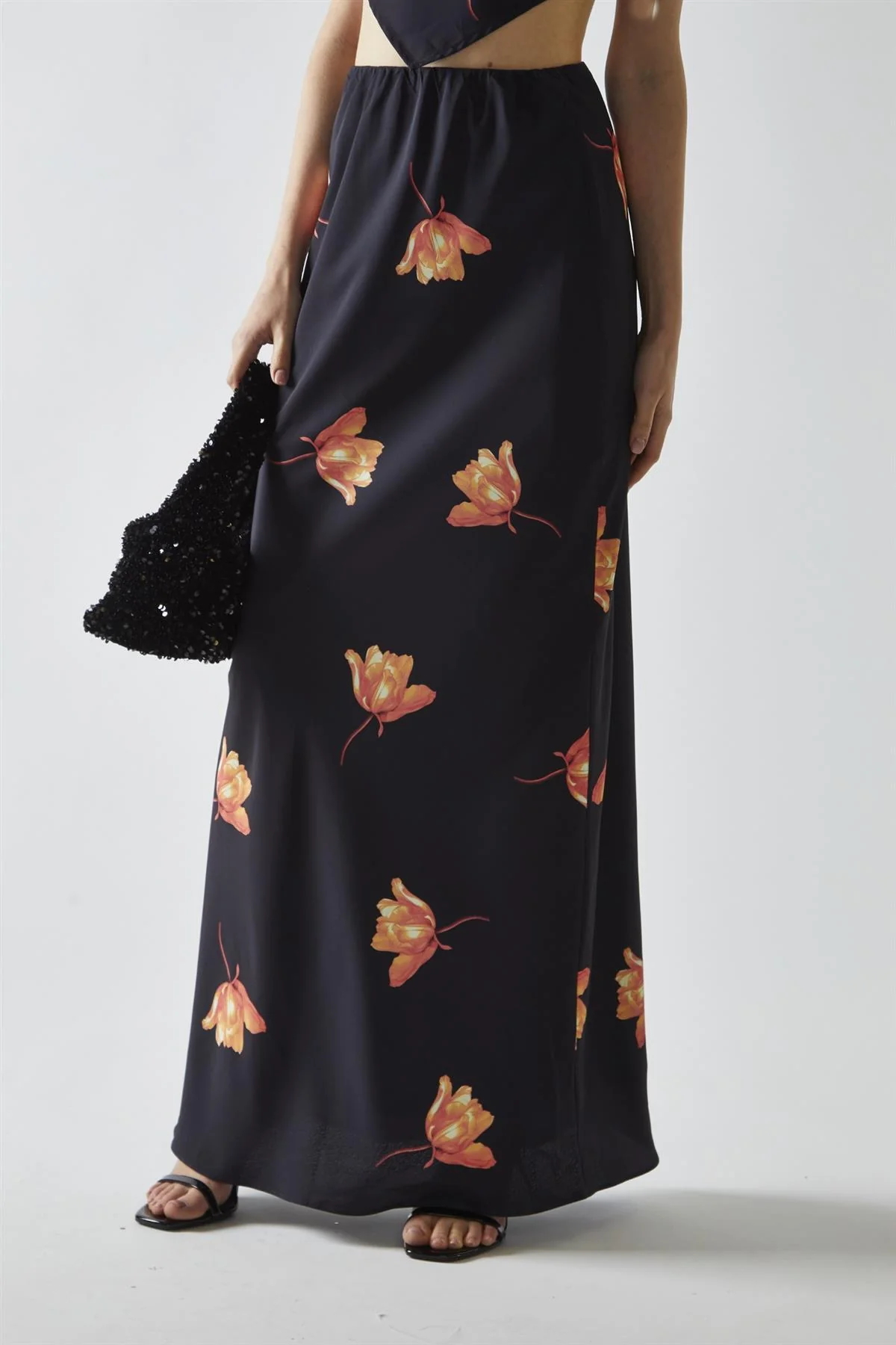 Black-Orange Flower Bias-Cut Maxi-Skirt