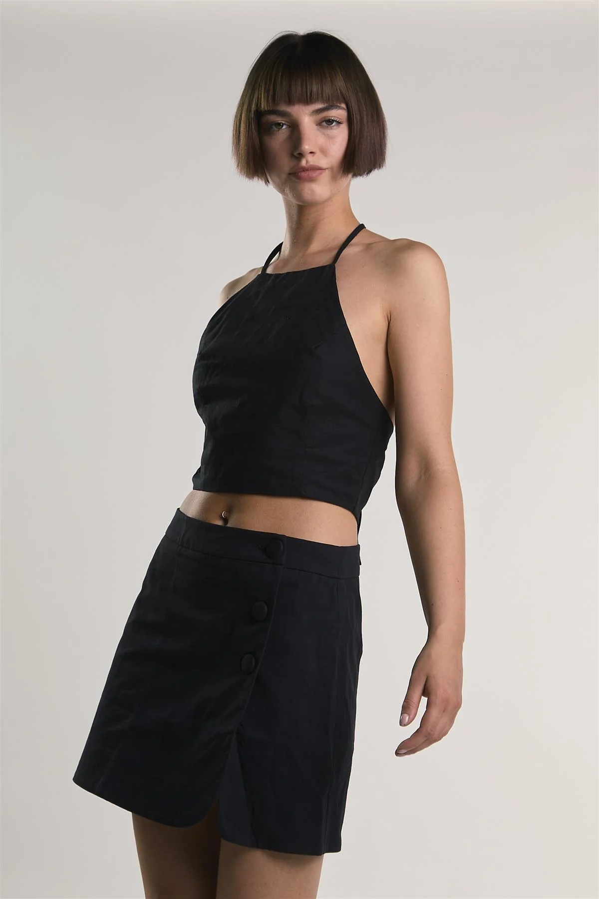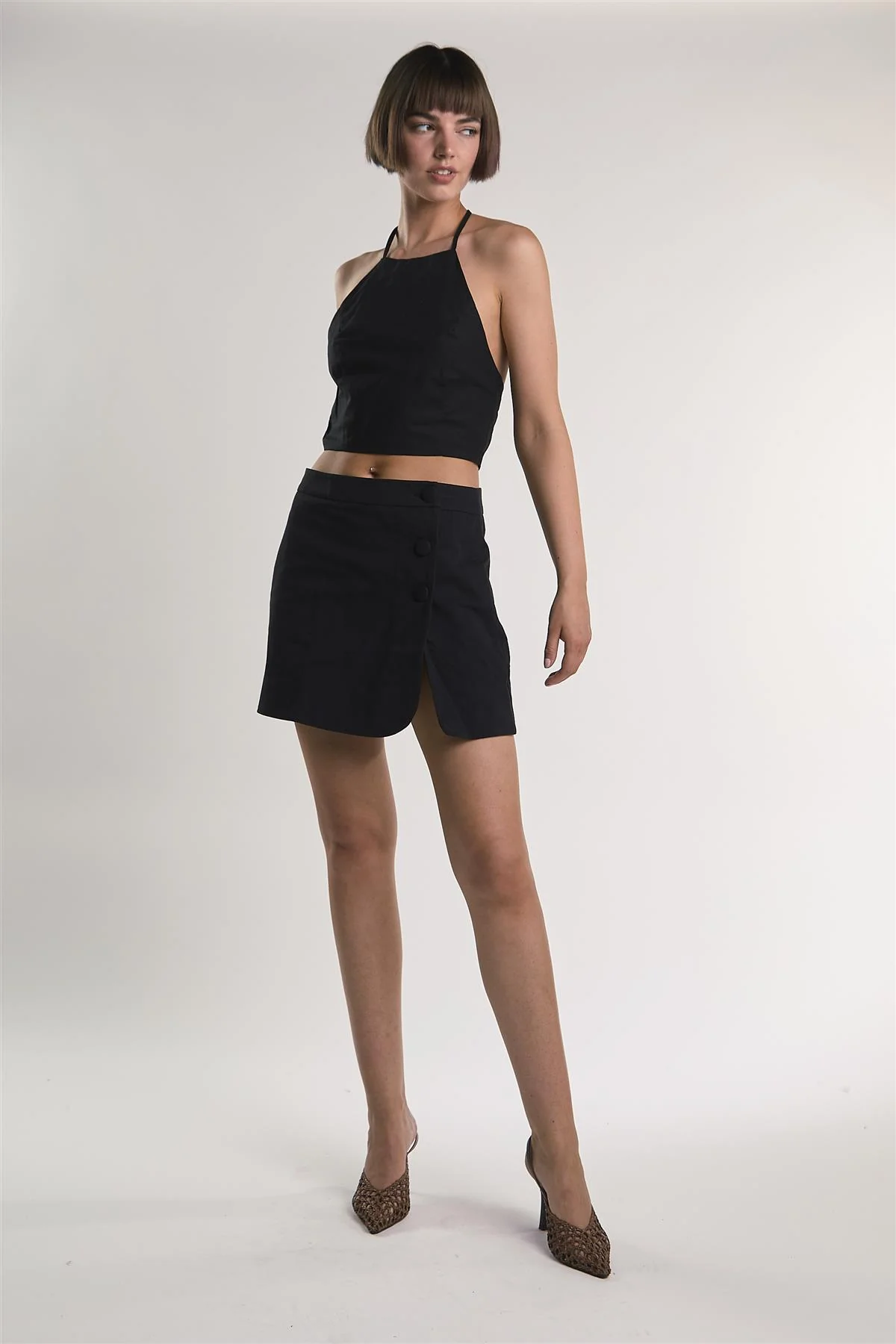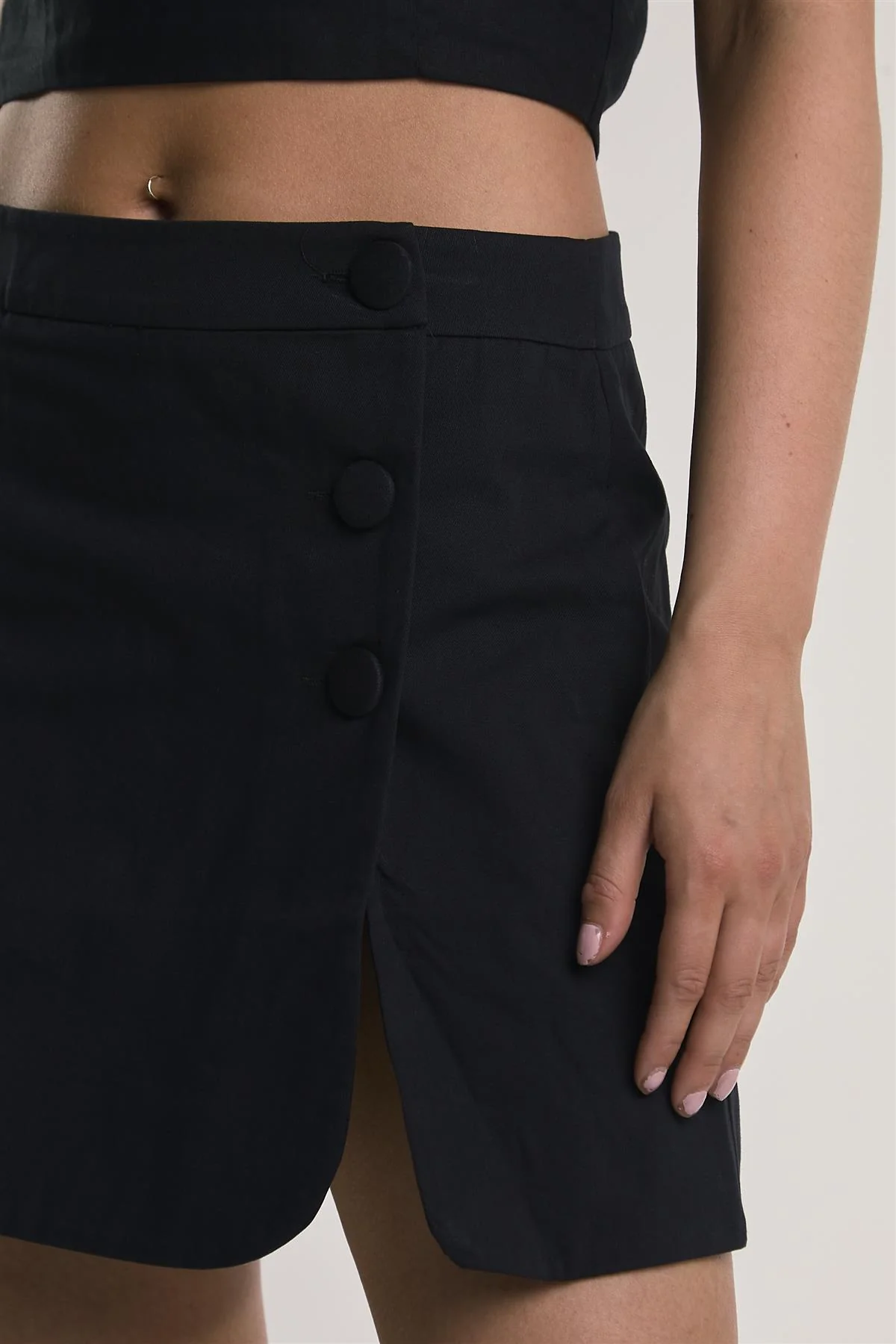 Black Button-Up Mini-Skirt