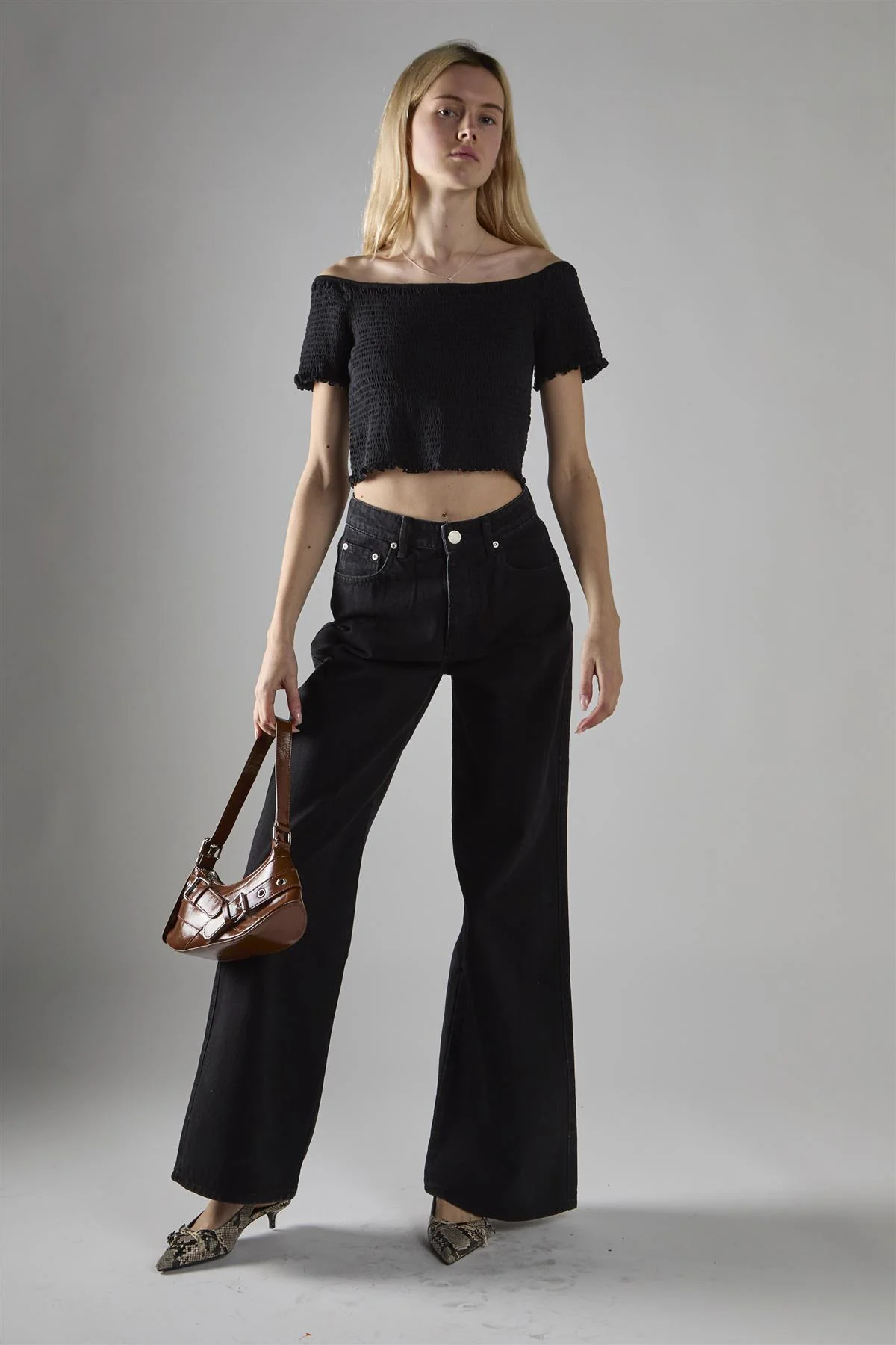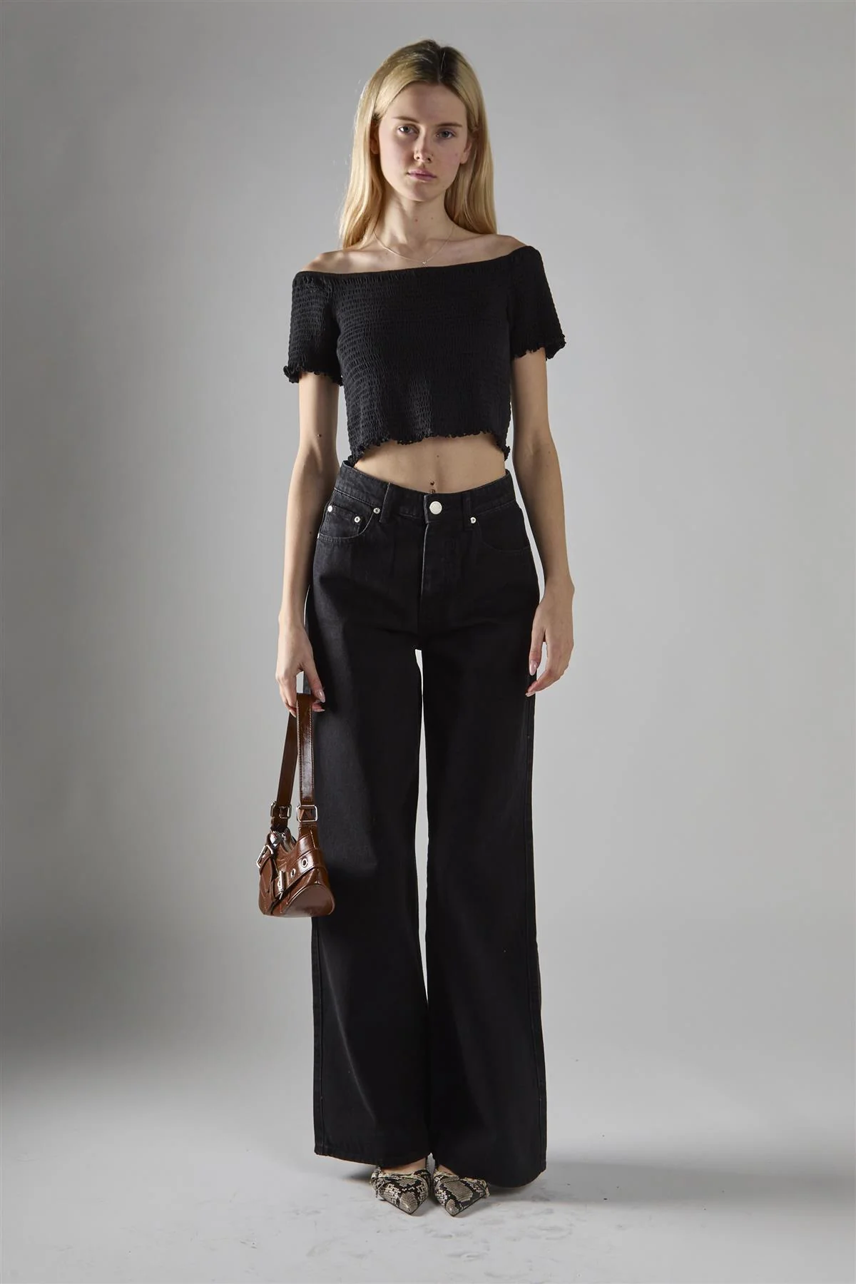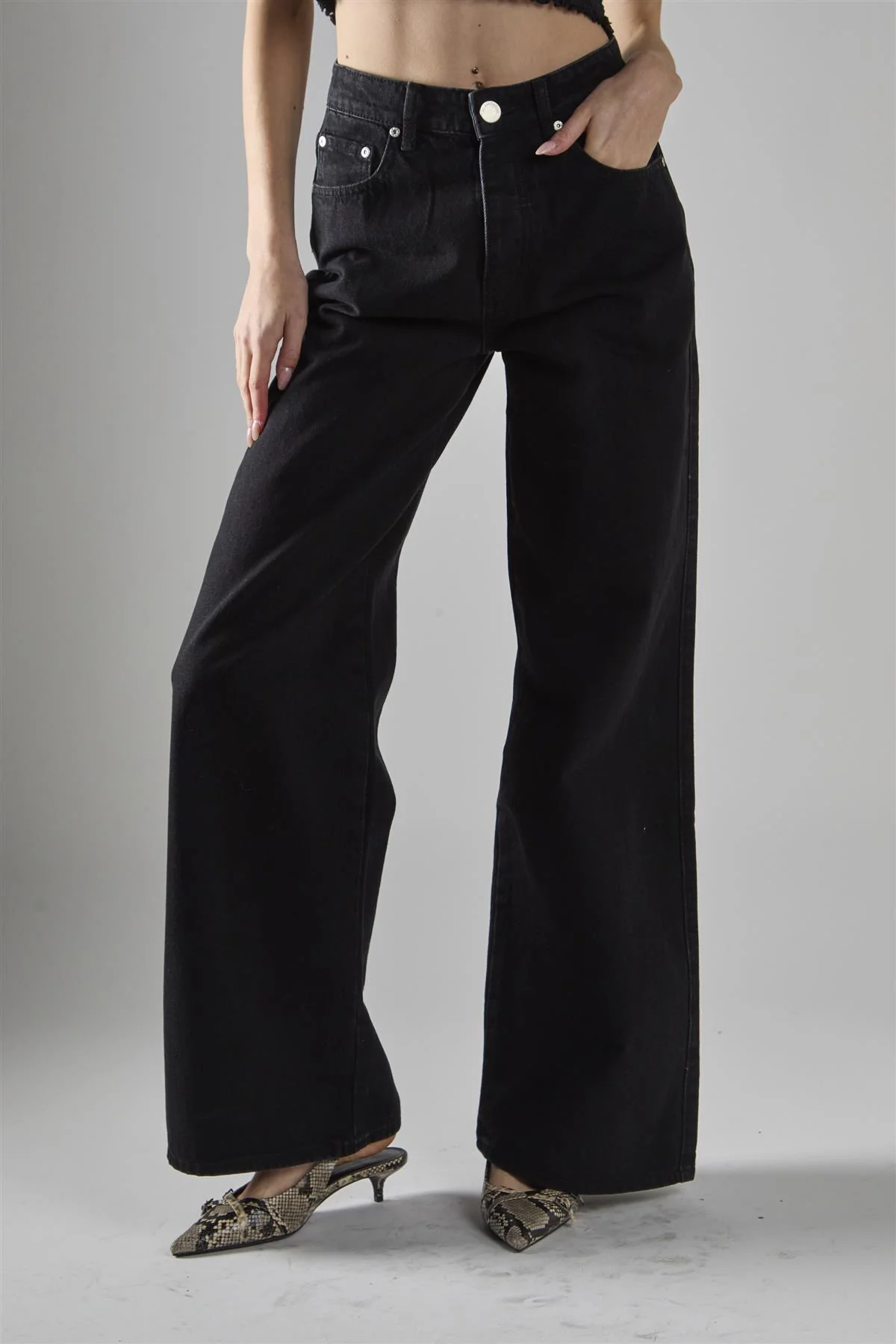 Washed-Black Wide-Leg Mid-Rise-Jeans