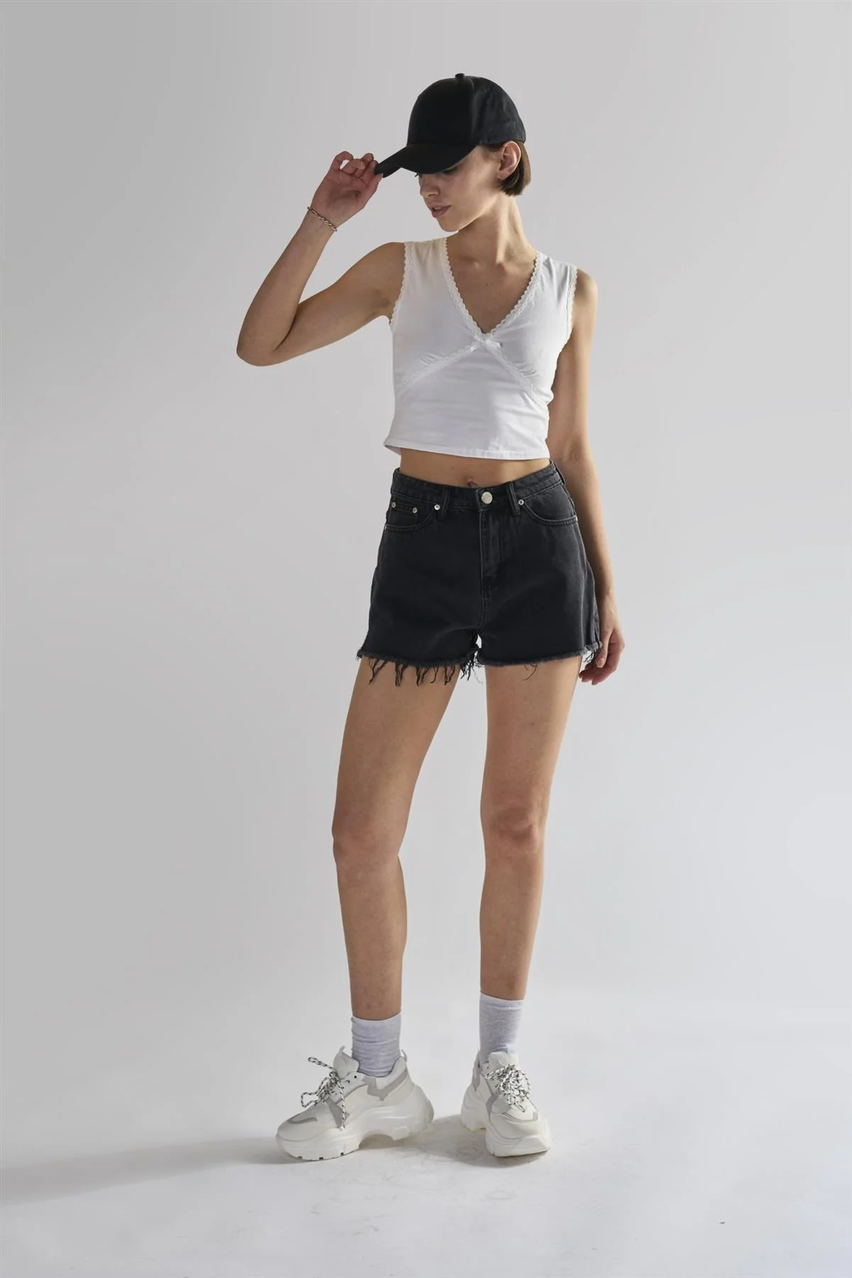 Black Frayed Hems Denim Shorts