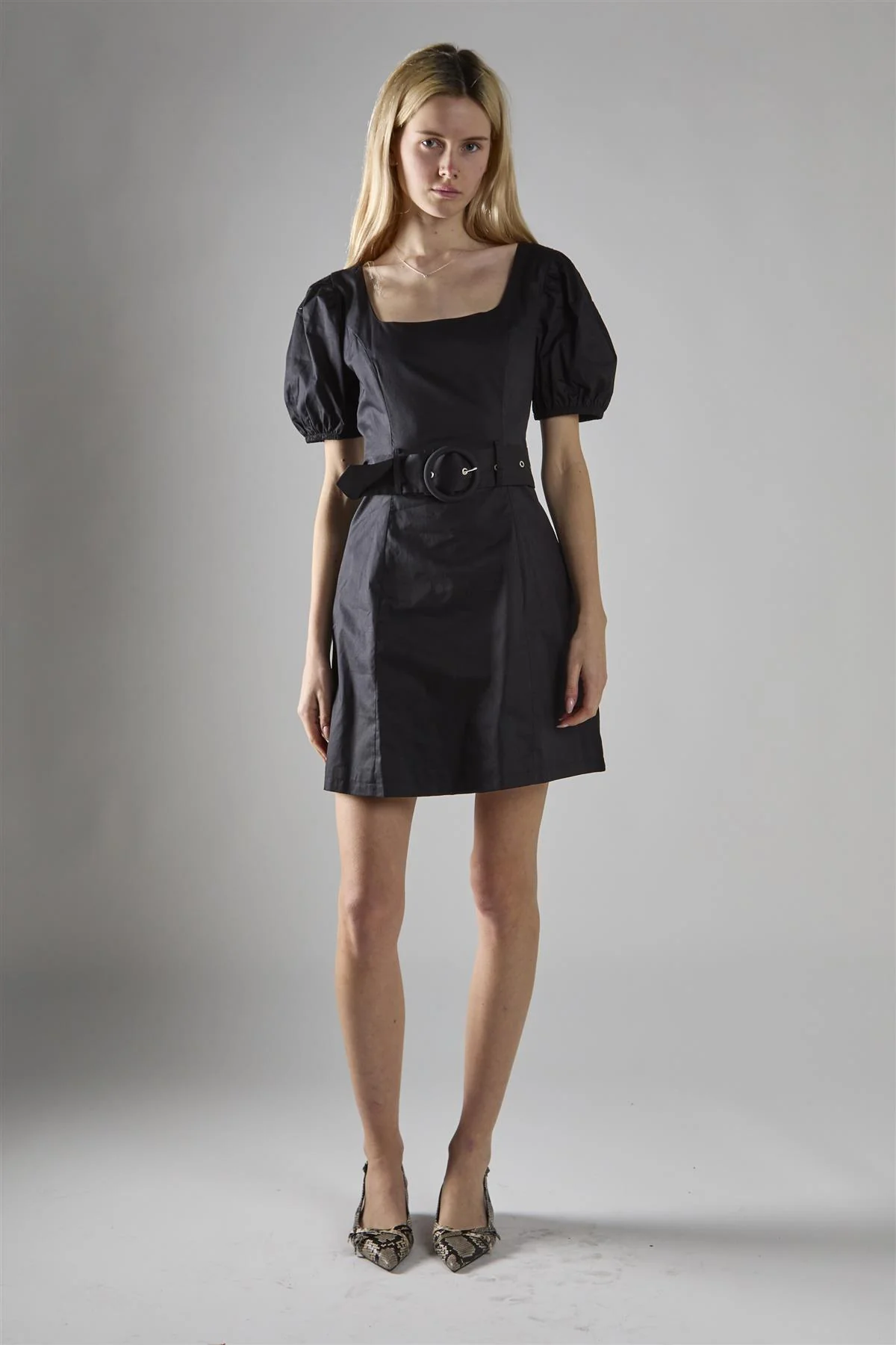 Black Belted Peplum Mini-Dress
