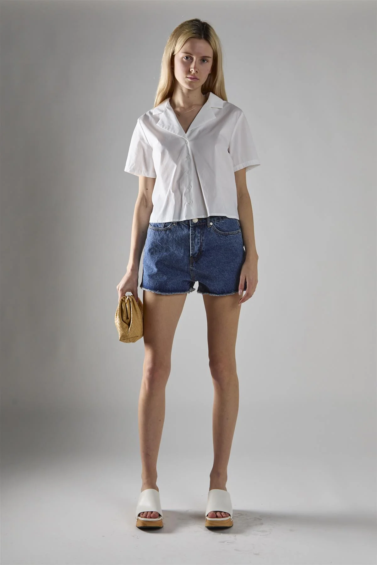 Mid Stonewash Denim Low-Rise-Shorts