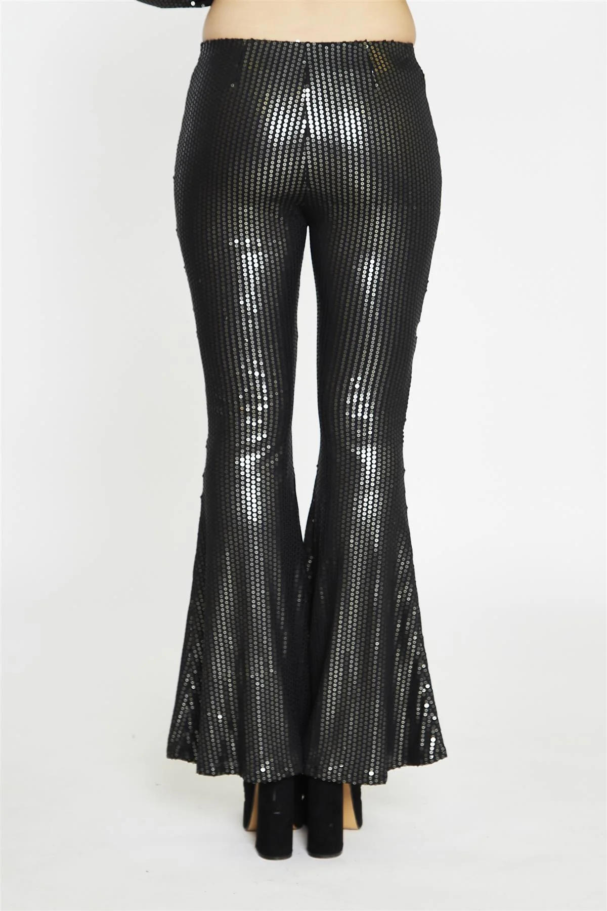 Black Pewter-Sequin Flared Trousers