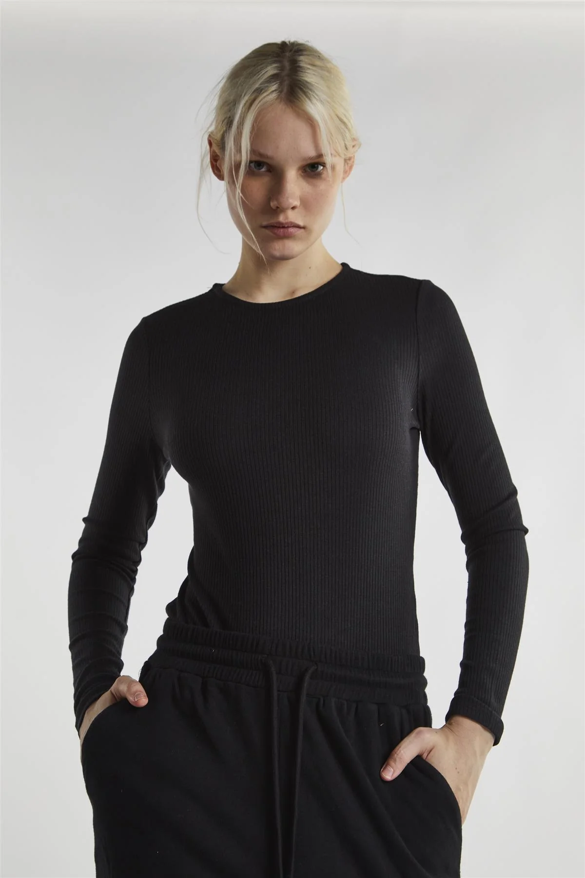 Black Rib Open Back Long-Sleeve-Bodysuit